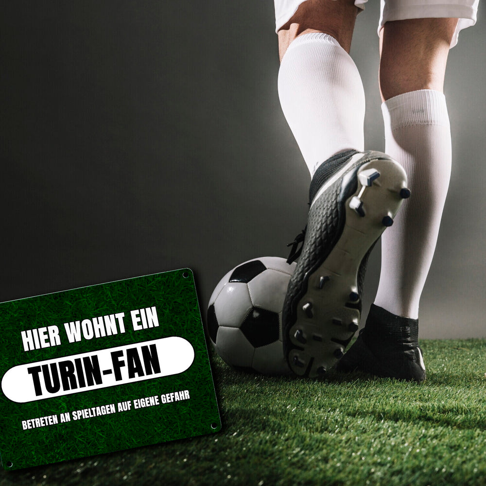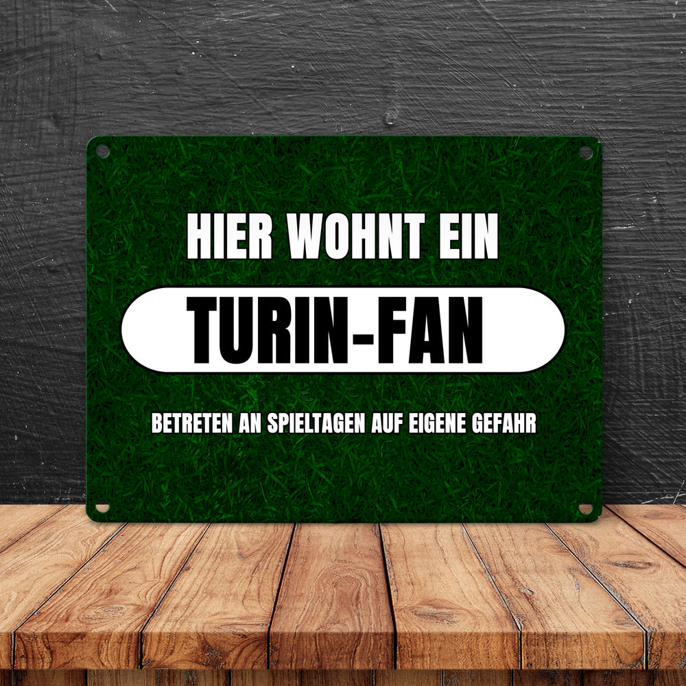 • 1x Hier wohnt ein Turin-Fan Metallschild in 15x20 cm mit Rasenmotiv in der gewählten Größe
