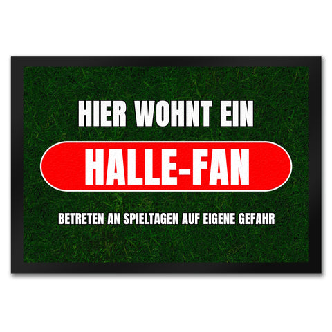 Hier wohnt ein Halle-Fan Fußmatte in 35x50 cm mit Rasenmotiv