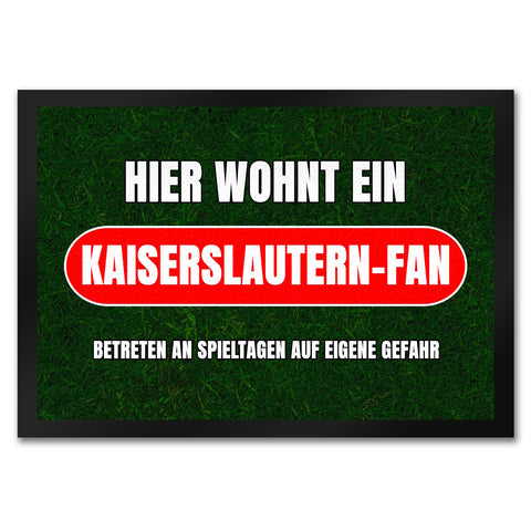 Hier wohnt ein Kaiserslautern-Fan Fußmatte in 35x50 cm mit Rasenmotiv