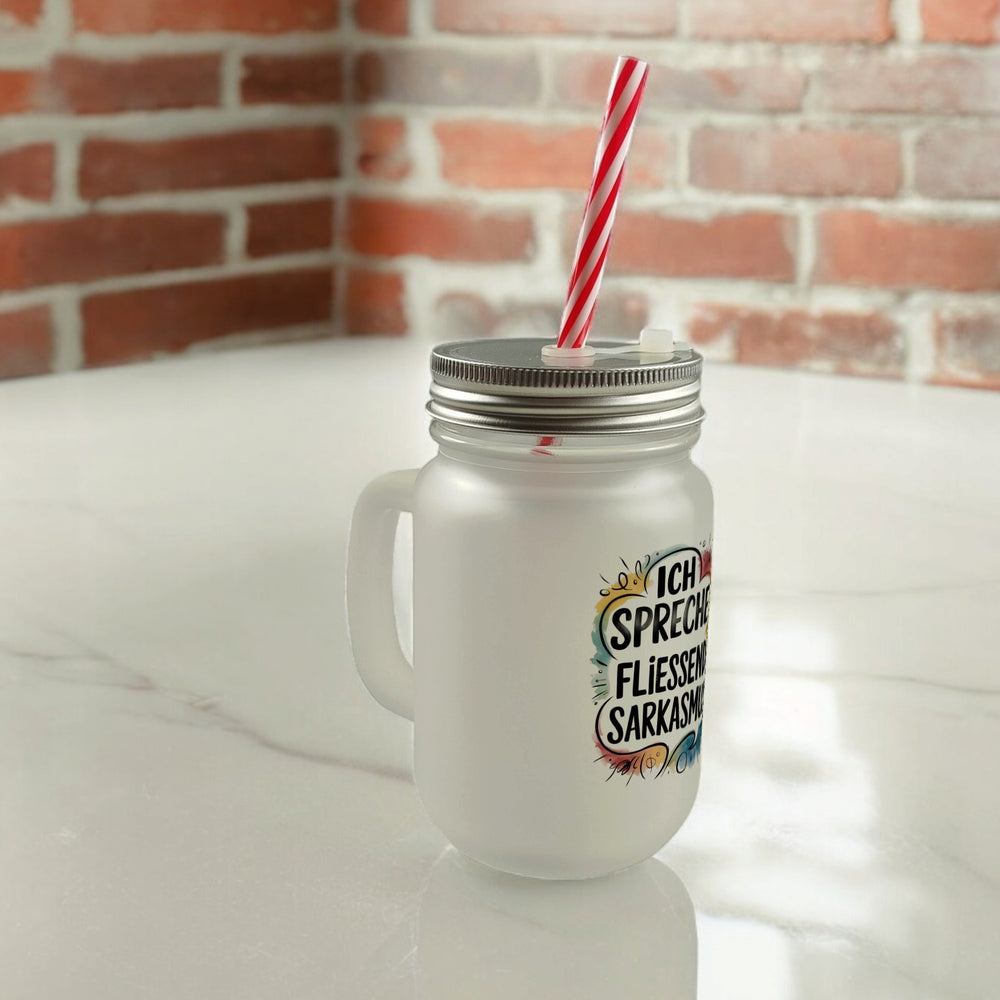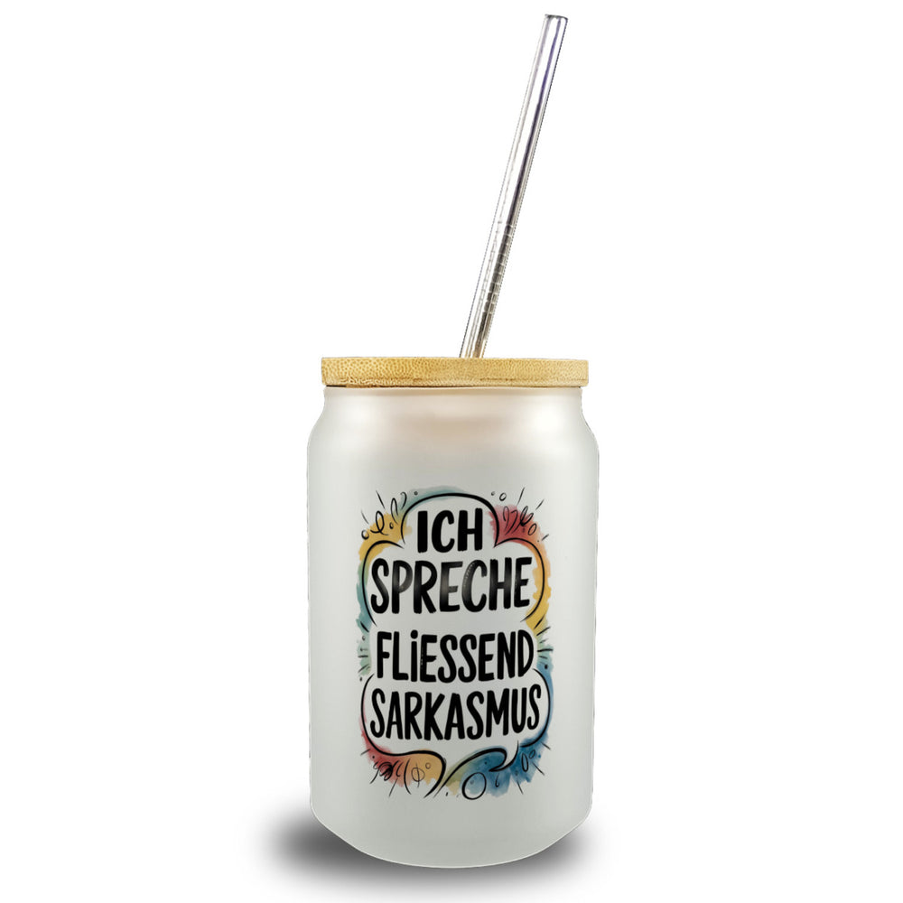 Ich spreche fließend Sarkasmus Trinkglas mit Bambusdeckel