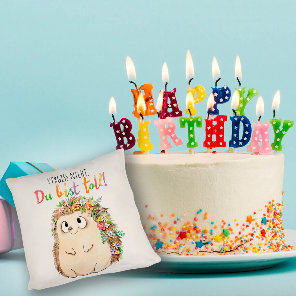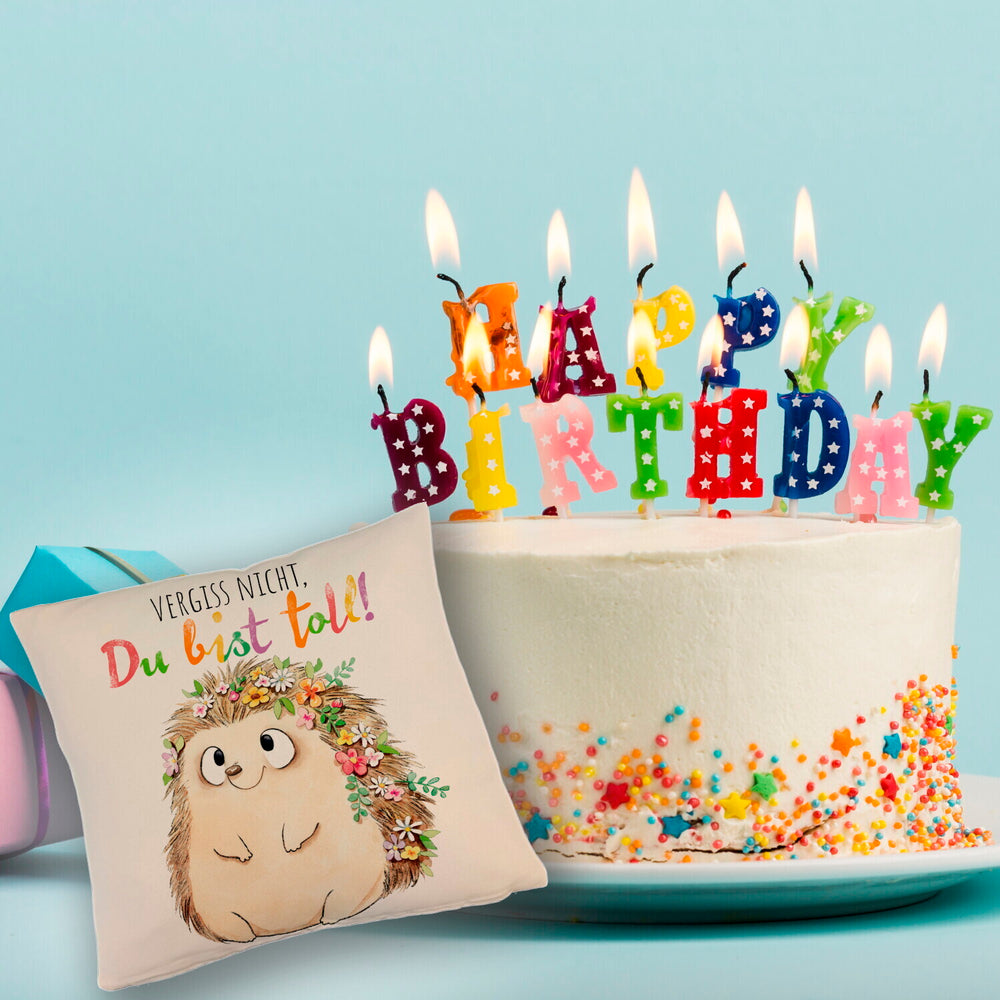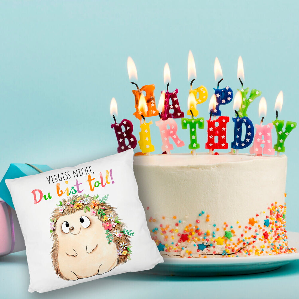- Bereit für kuschelige Affirmationen? Unser Igel Kissen zaubert nicht nur ein Lächeln ins Gesicht, sondern ist das bunte Wunderwerk an Fröhlichkeit! Ein niedlicher Igel, geschmückt mit einem Blumen-Bouquet, erinnert Dich täglich: "Vergiss nicht, Du bist toll!"
