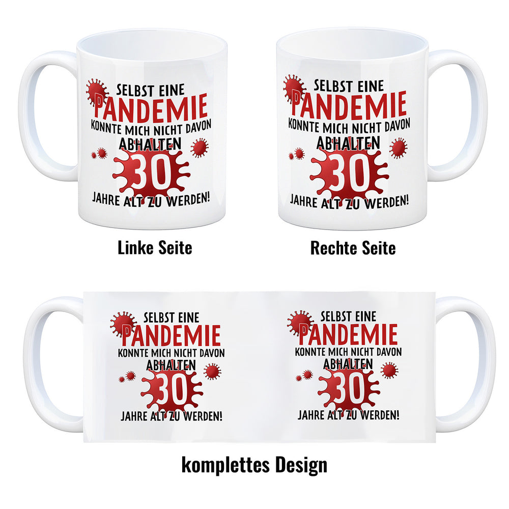 Kaffeebecher für den 30. Geburtstag mit Motiv: Pandemie