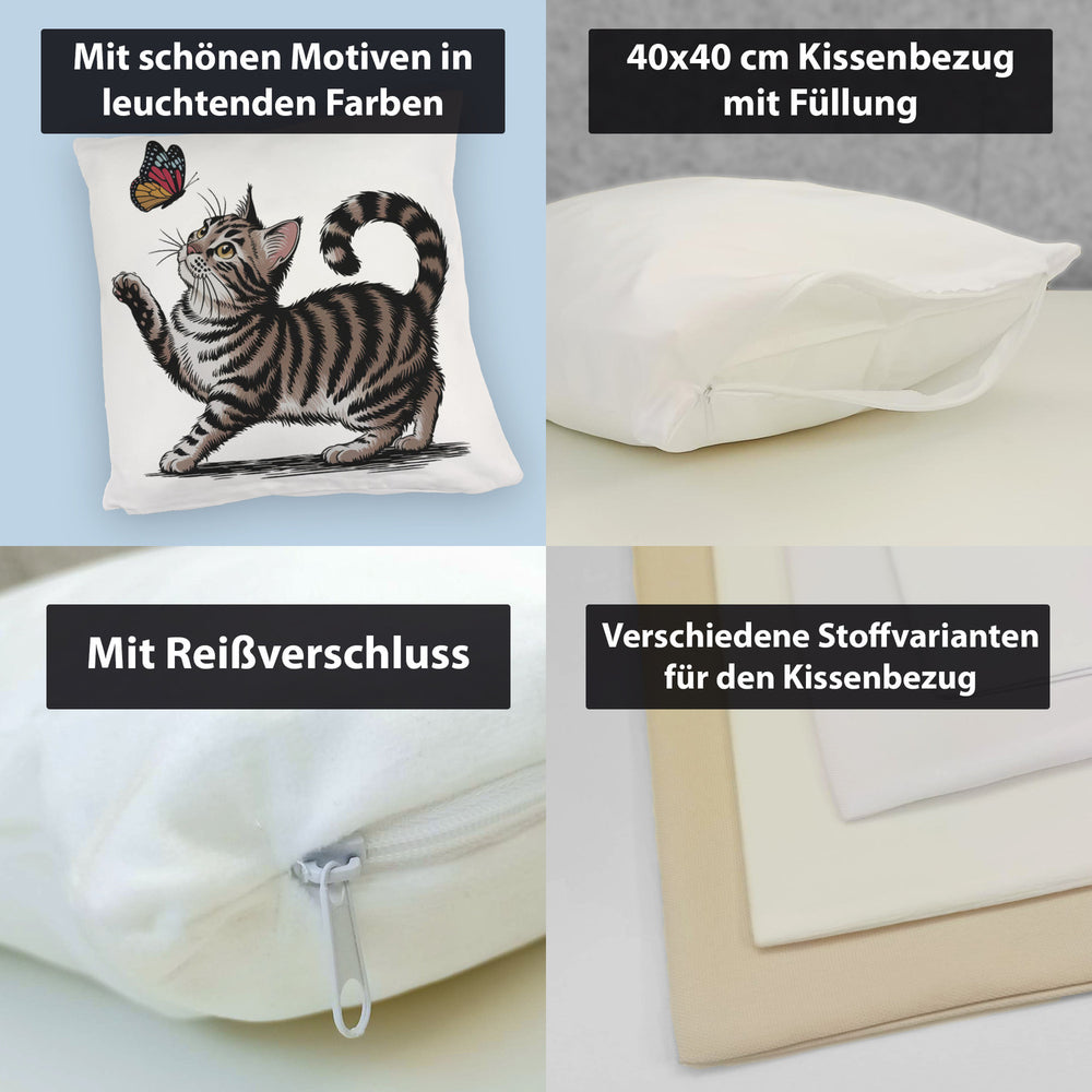 Katze mit Schmetterling Kissen für Tierliebhaber