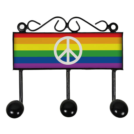 Regenbogen Friedenszeichen Kleiderhaken Leiste mit 3 Haken - Peace