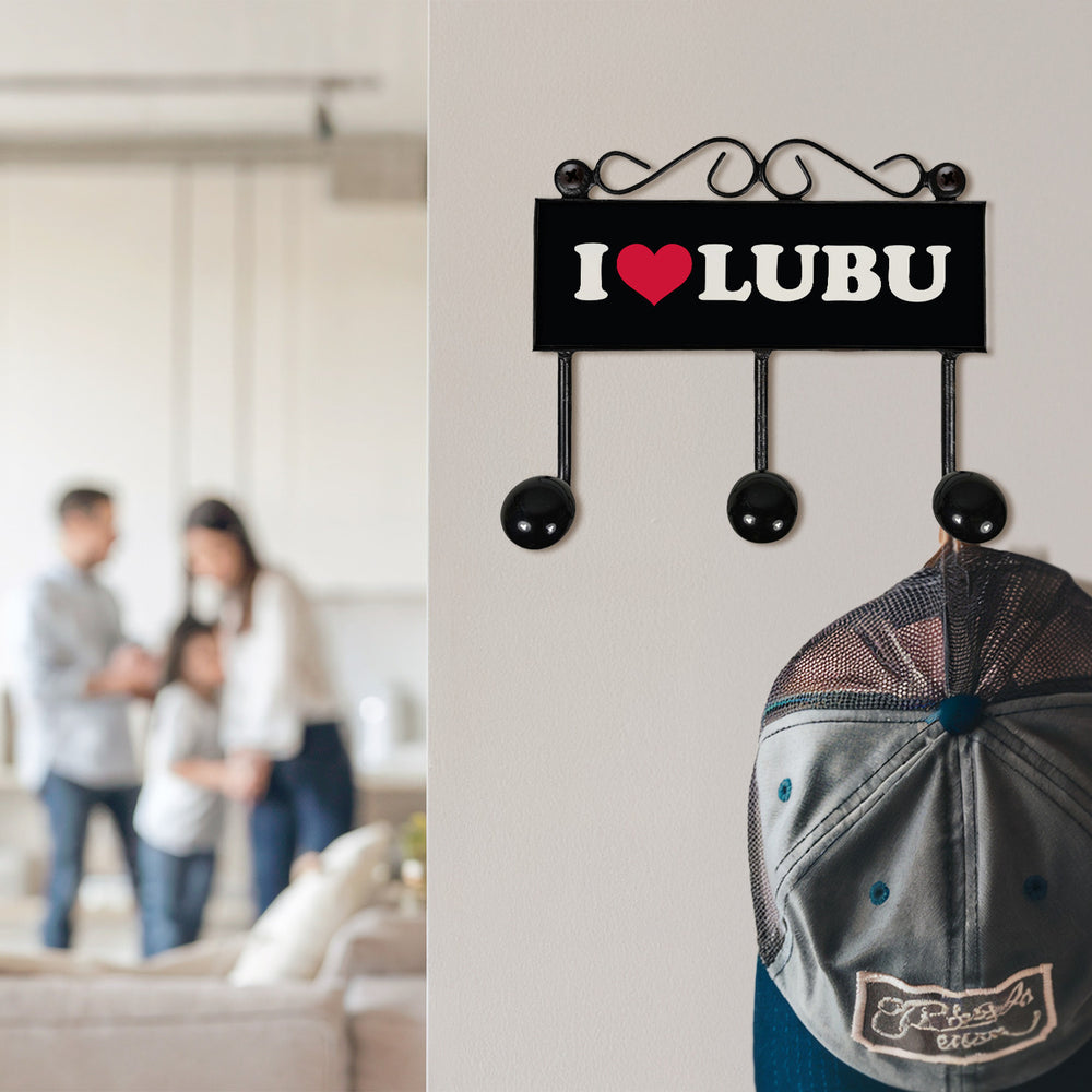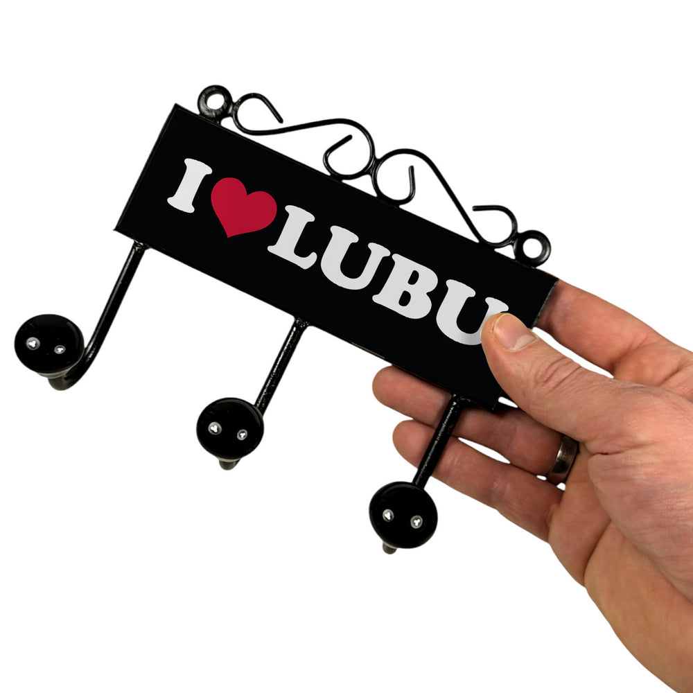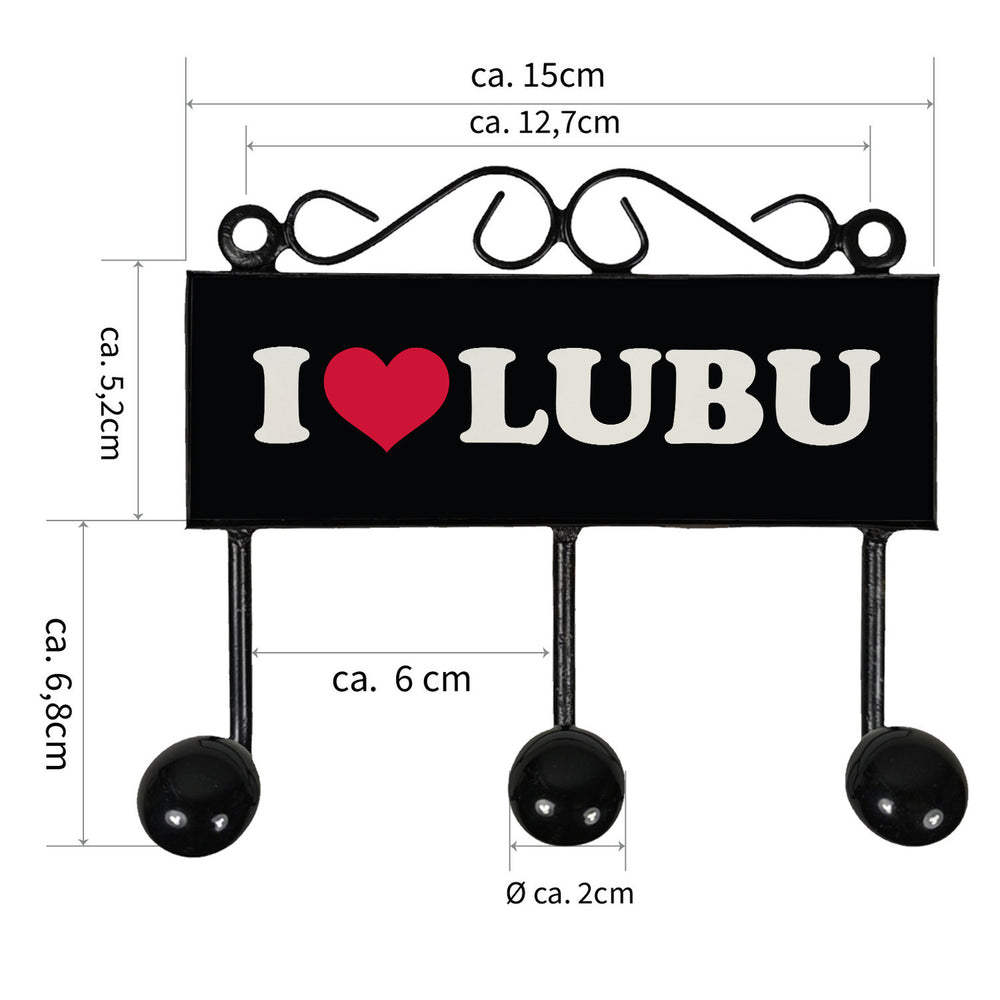 - Die Ludwigsburg Kleiderhaken Leiste schwarz - I Love LUBU besticht mit einem modernen Stadtmotiv. Große, weiße Buchstaben und ein rotes Herz auf schwarzem Hintergrund machen die Liebe zu LUBU sichtbar. Diese Retro Wandgarderobe ist nicht nur praktisch, sondern auch ein echter Hingucker in jedem Flur oder Raum.