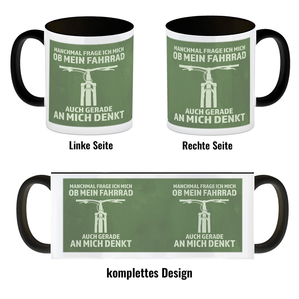 - 1x Manchmal frage ich mich ob mein Fahrrad auch gerade an mich denkt Kaffeebecher in der gewählten Ausführung