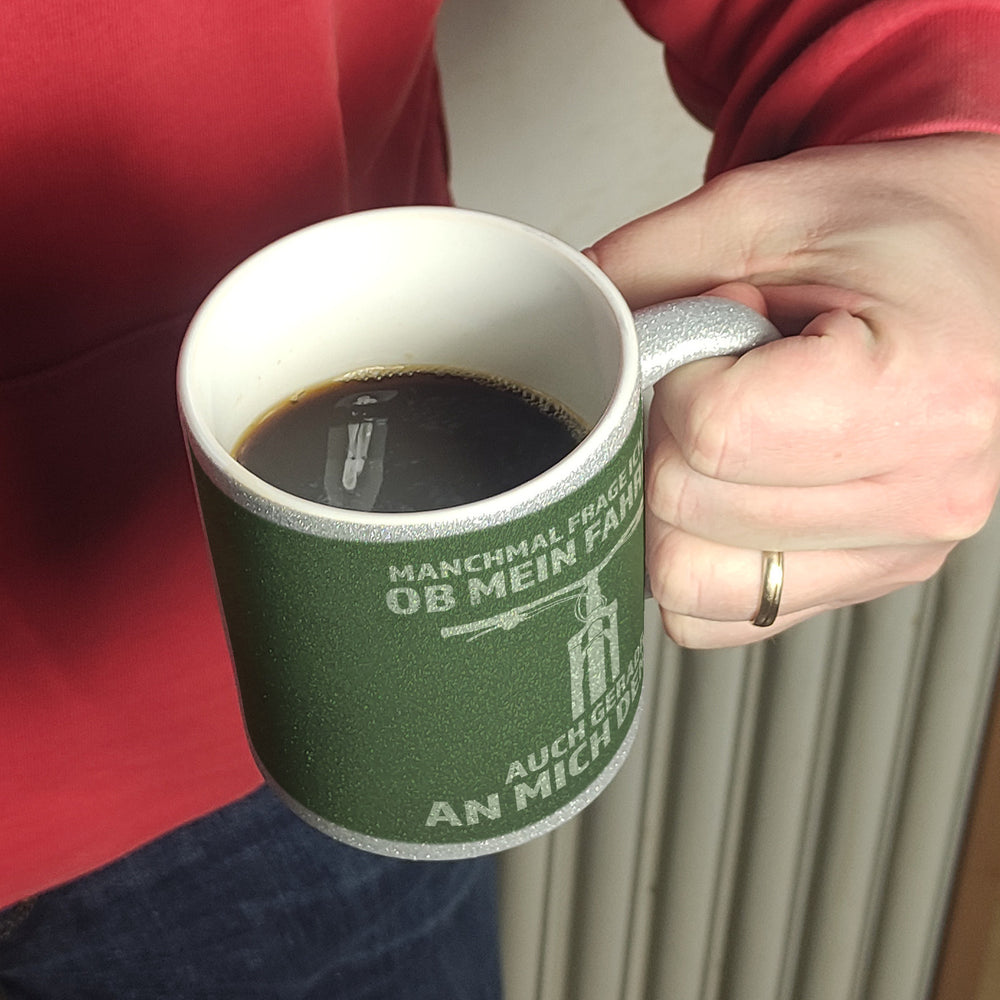 - Erhältlich in unterschiedlichen Varianten: Als weiße Standardtasse, mit farbigem Henkel und Innenseite, als edle Glastasse oder in der exklusiven Silberedition mit Glitzereffekt. Mit Sorgfalt in Handarbeit hergestellt in unserer Tassen-Manufaktur in Deutschland.