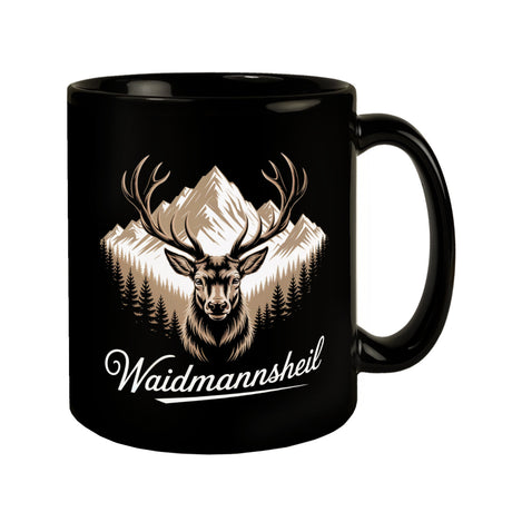 Hirsch vor Bergkulisse Waidmannsheil Tasse für Jäger