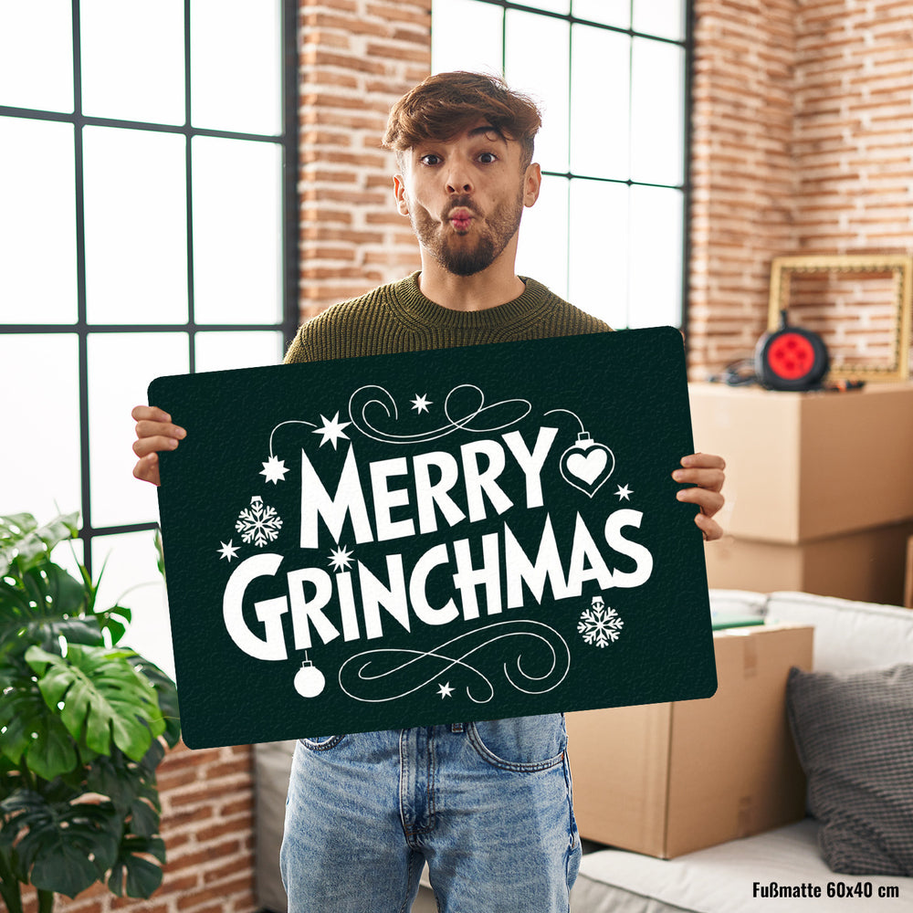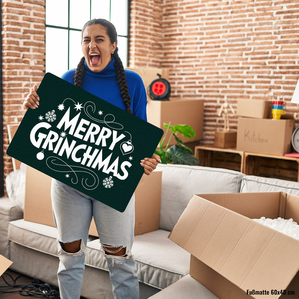 Merry Grinchmas Weihnachtsmuffel Fußmatte in 35x50 cm - Lustige Weihnachtsdekoration