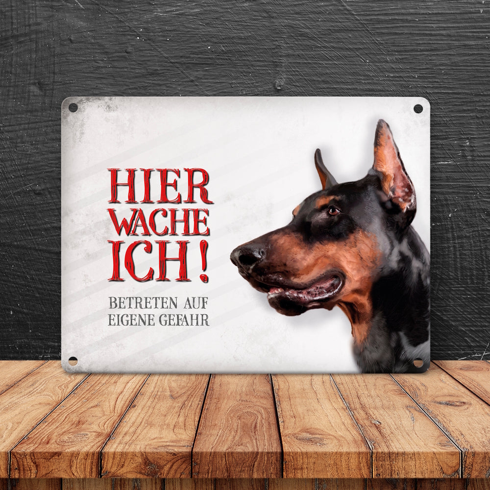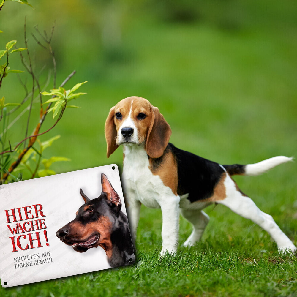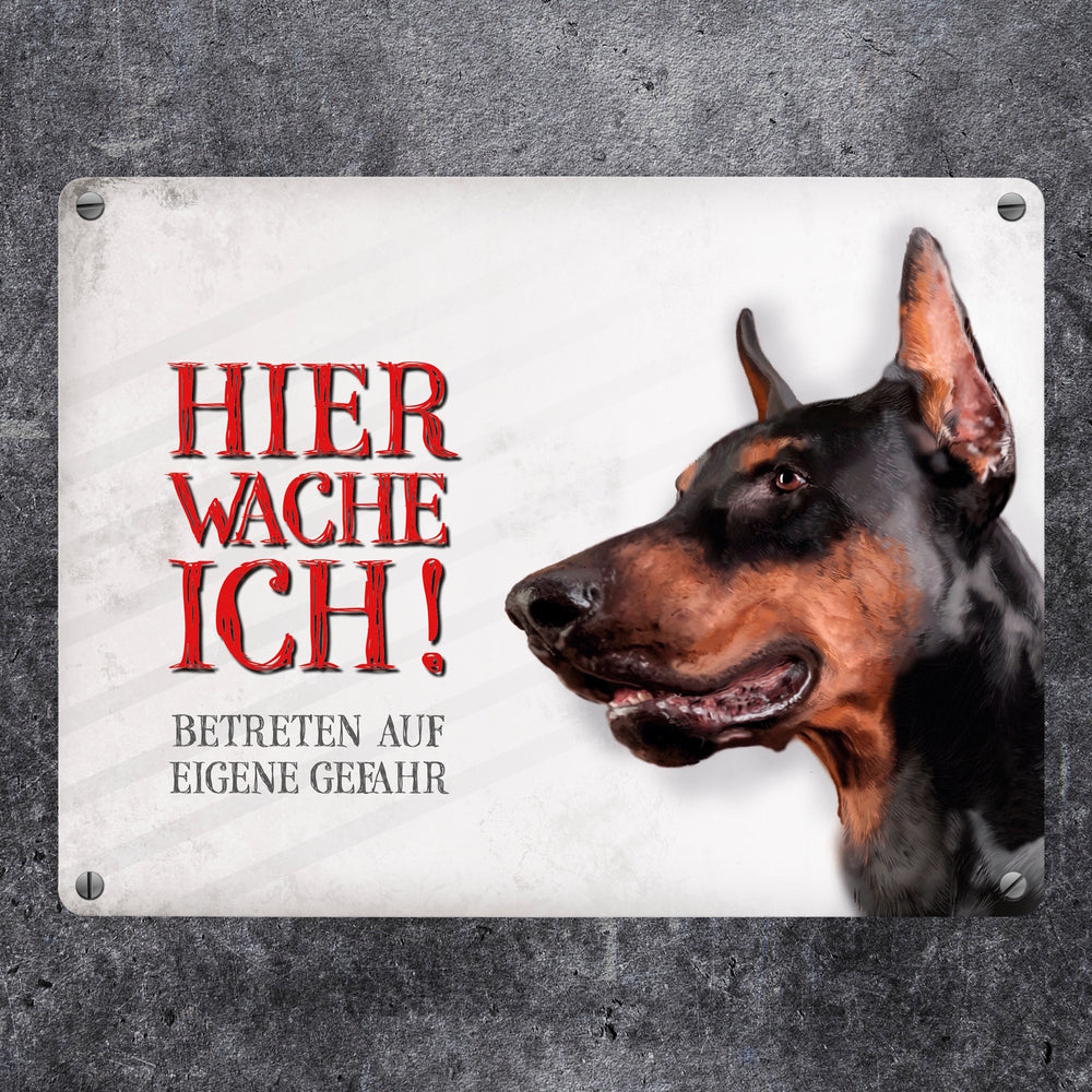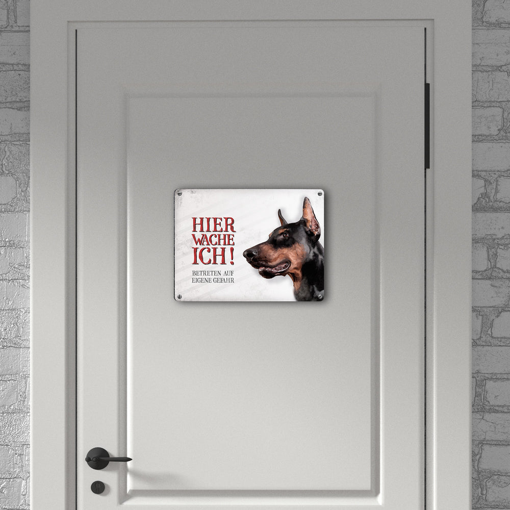 • Lieferumfang: 1x Metallschild mit Dobermann Motiv und Spruch: Betreten auf eigene Gefahr ...