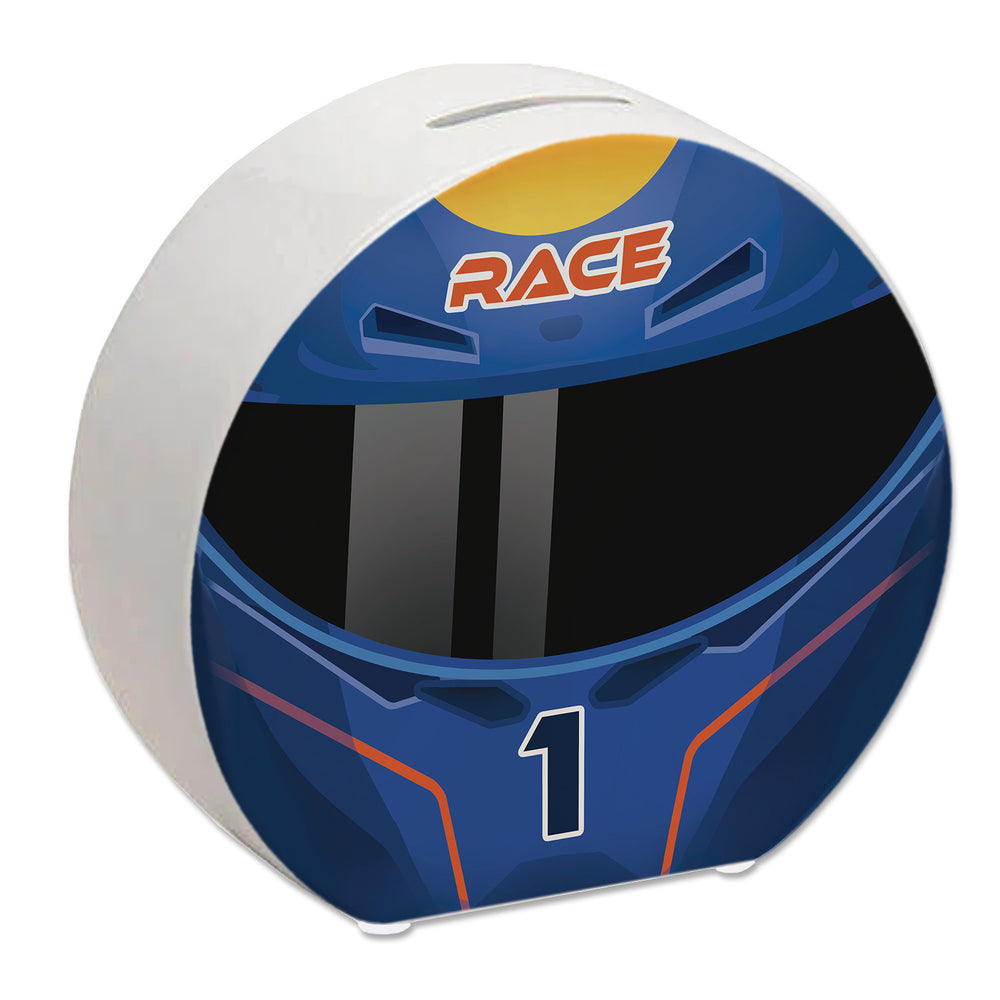 - Unsere coole Spardose ist ein echter Hingucker! In leuchtenden Farben und mit einem rasanten Motorsport-Helm Motiv versehen, ist sie ein Muss für jeden Auto- oder Motorradfan. Sie brauchen eine Spardose, um Ihr Kleingeld stilvoll zu sammeln und gleichzeitig Ihre Liebe zum Motorsport zu zeigen.