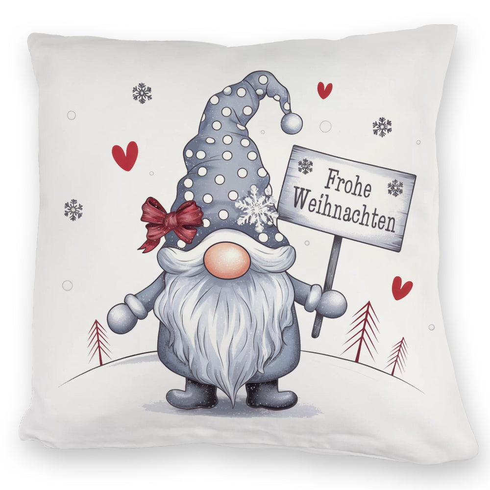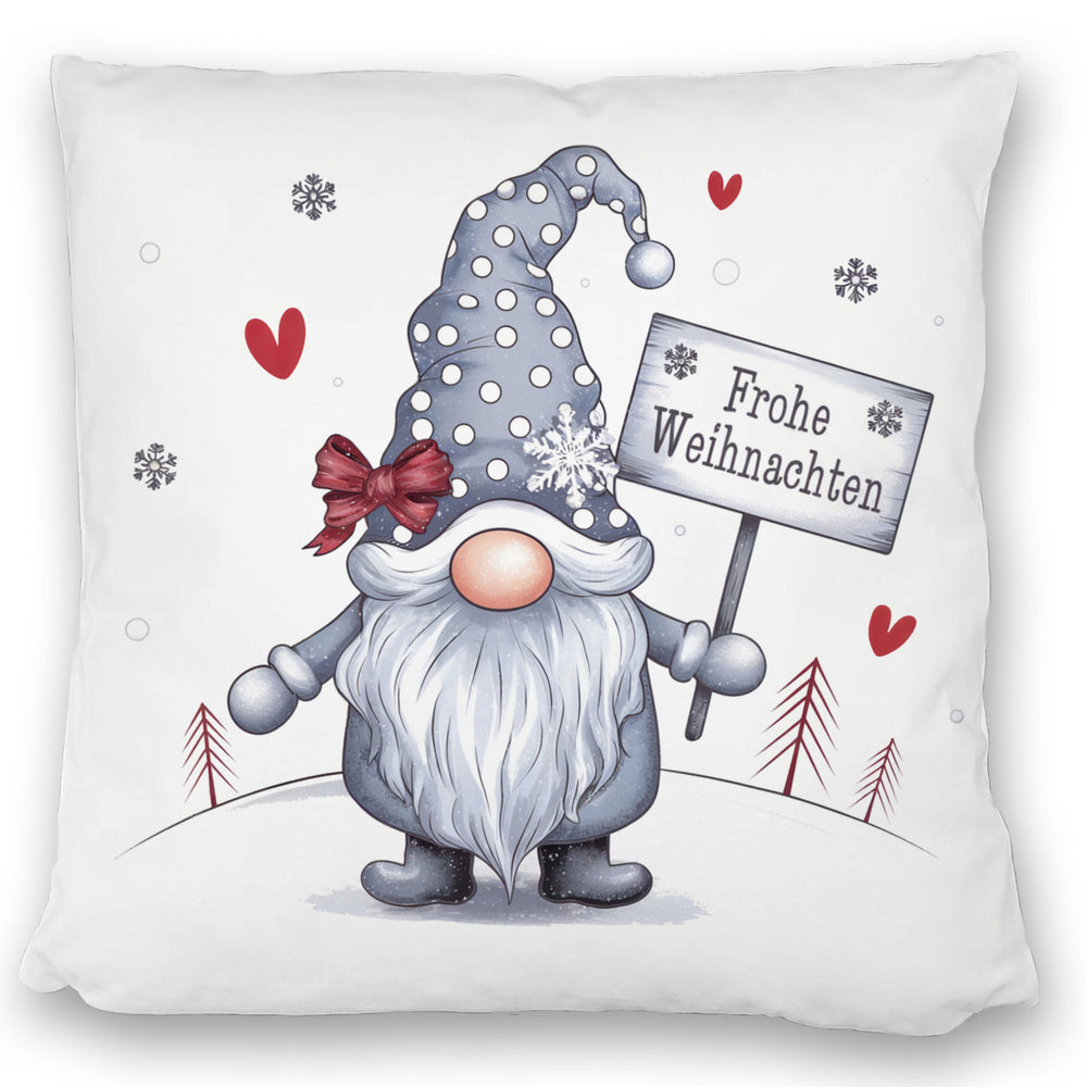 niedlicher Weihnachtswichtel mit Schild Kissen - Frohe Weihnachten
