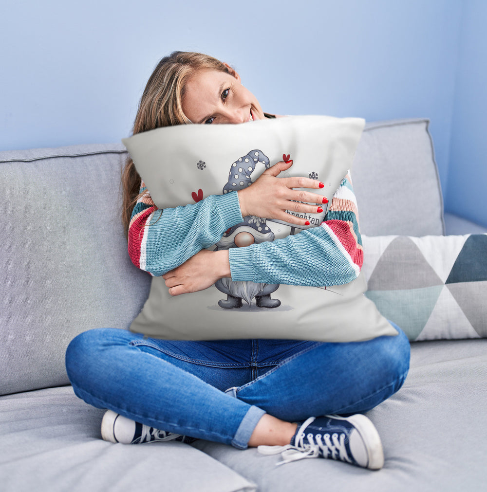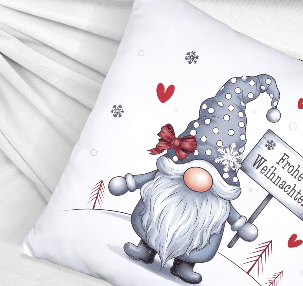 - Der niedliche Weihnachtswichtel mit Schild Kissen ist das Highlight jeder Winterdekoration! Mit grauem Hut, roter Schleife und weißem Bart zaubert dieses Kissen jedem ein Lächeln ins Gesicht. Perfekt für gemütliche Feiertage – dein Sofa wird es lieben!