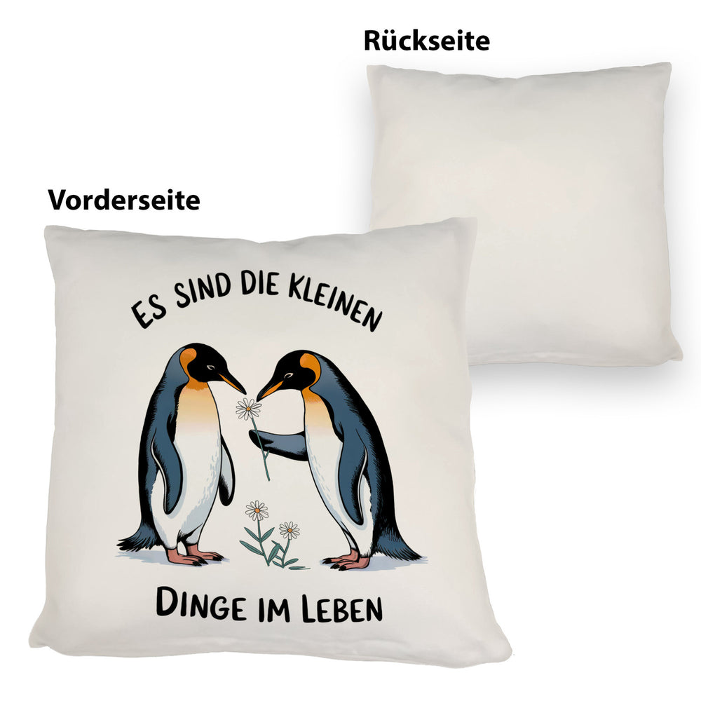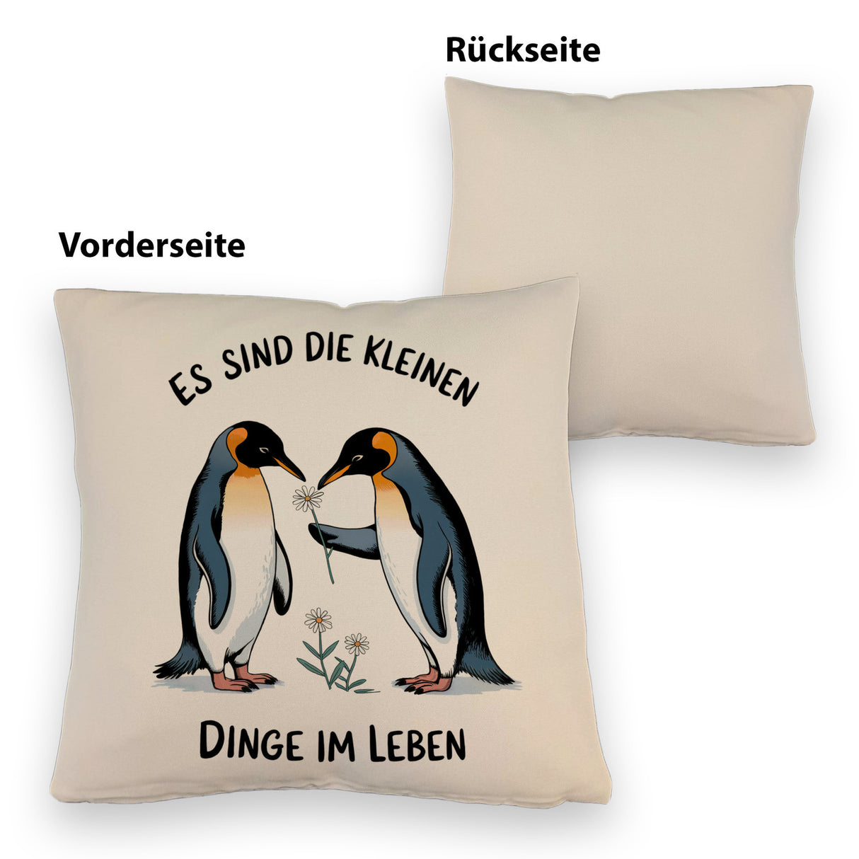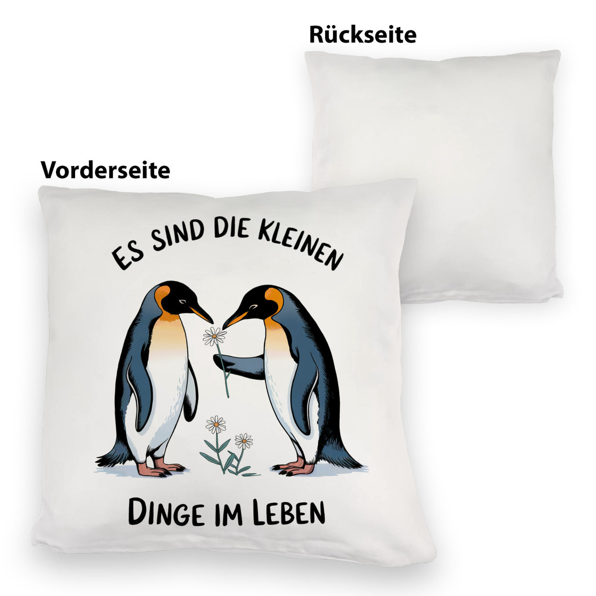 - 1x Pinguine mit Blumen - Es sind die Kleinen Dinge Kissen in der gewählten Ausführung