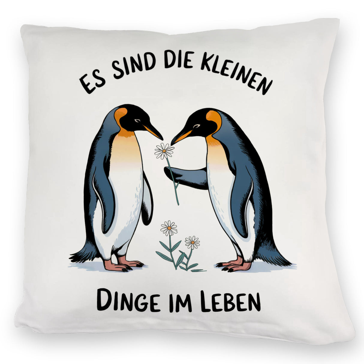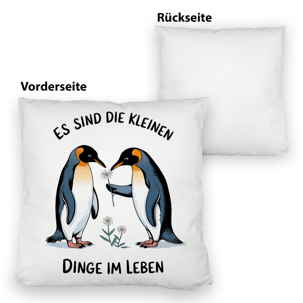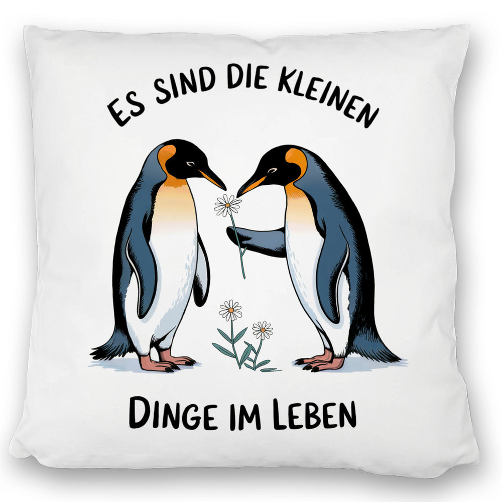 - 1x Pinguine mit Blumen - Es sind die Kleinen Dinge Kissen in der gewählten Ausführung