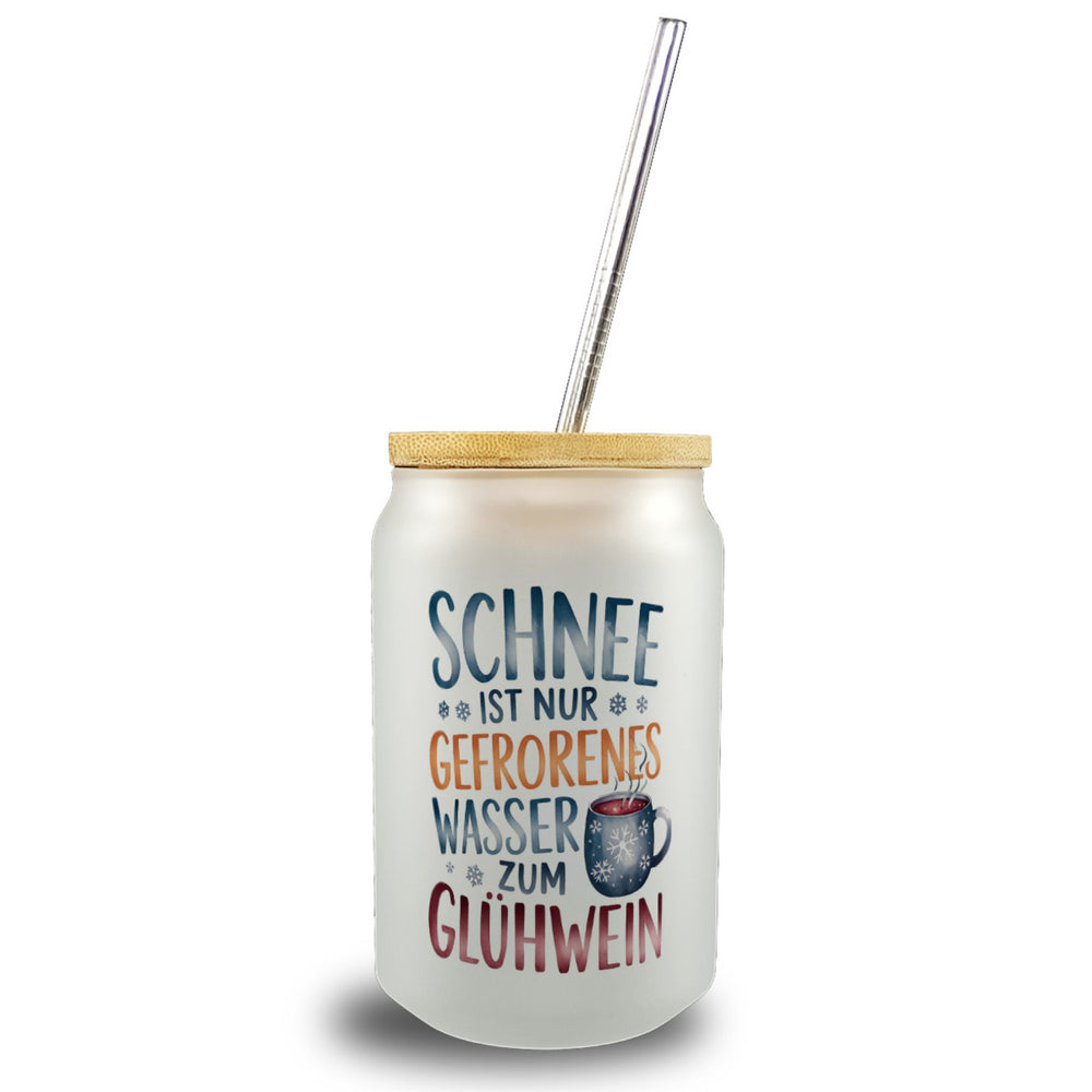 Schnee ist nur gefrorenes Wasser zum Glühwein Trinkglas mit Bambusdeckel