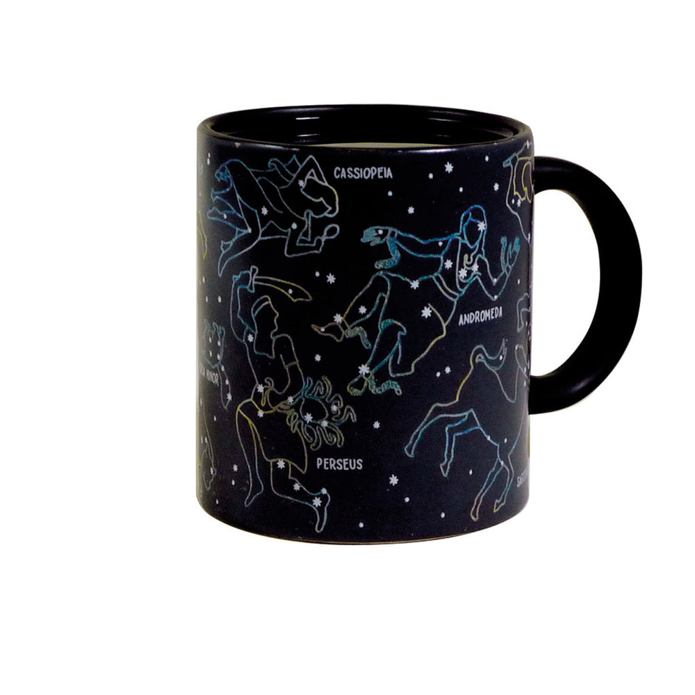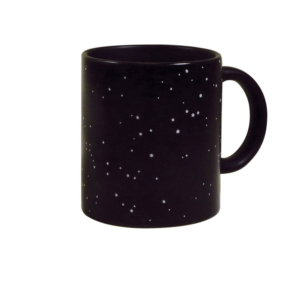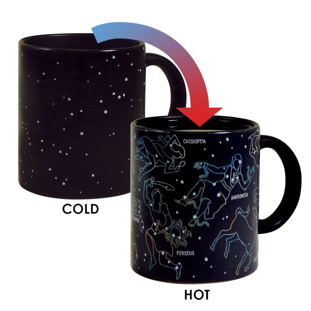 Diese Sternbilder Kaffeebecher aus Keramik werden Sie begeistern! Mit einer Höhe von ca. 9 cm, einem Durchmesser von 8,5 cm und einem Fassungsvermögen von 300 ml machen sie nicht nur optisch etwas her. Im kalten Zustand zeigt die Tasse einen wolkenlosen Nachthimmel mit weißen Sternen, doch erst beim Befüllen mit heißer Flüssigkeit verbinden sich die Sterne zu den bekanntesten Sternbildern. Ein magischer Moment! Kühlt die Tasse wieder ab, so sind wieder nur die Sterne zu sehen. Begeben Sie sich auf eine Reise in das Universum und erfreuen Sie sich an den schönen Sternbildern - dank diesem außergewöhnlichem Kaffeebecher. Damit Sie lange Freude an ihm haben, beachten Sie bitte die Pflegehinweise auf dem Beipackzettel und der Verpackung. Genießen und staunen Sie über das Universum direkt vor Ihrer Haustür!