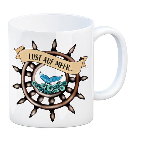 Kaffeebecher Lust auf Meer mit maritimen Motiv Flosse Steuerrad Meer WellenPreis ab: €12,95
