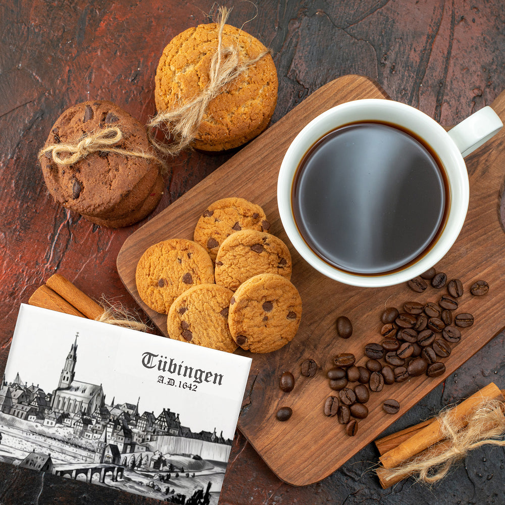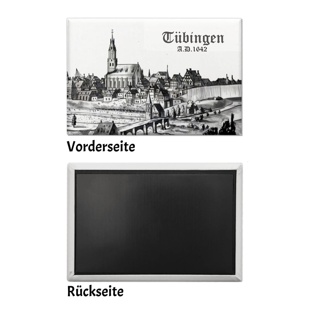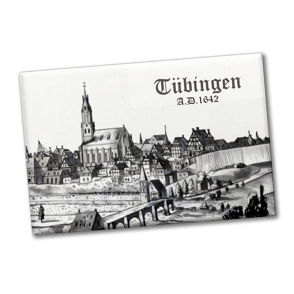 - Unser Tübingen 1642 Stiftskirche St. Georg Souvenir Magnet besticht durch eine detailreiche Bleistiftzeichnung aus dem Jahr 1642. Die schwarz-weiße Darstellung zeigt die prächtige Stiftskirche im Zentrum, umgeben von den historischen Charme der Stadt Tübingen. Ein wahres Kunstwerk, das Geschichte und Architektur perfekt einfängt!