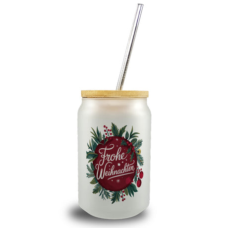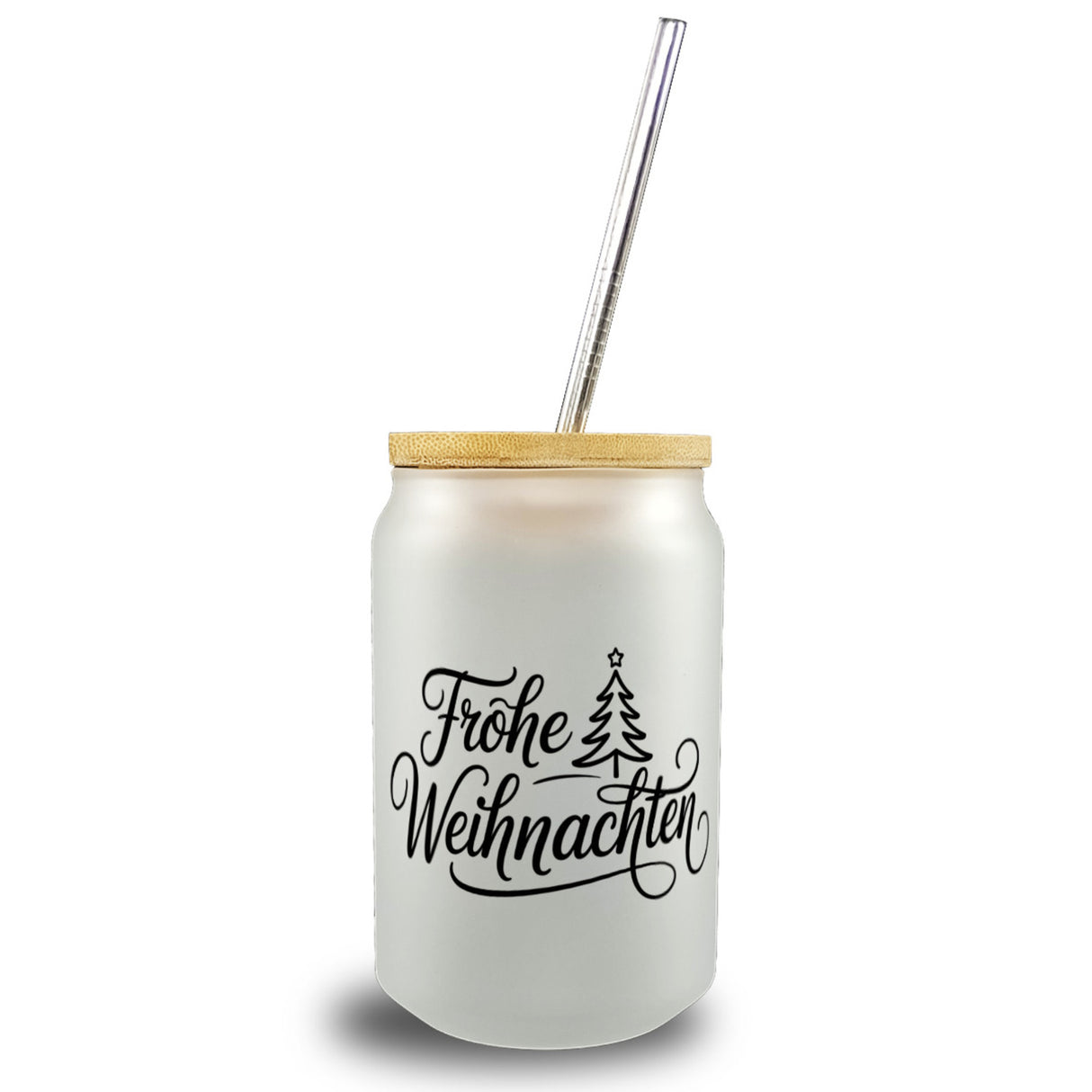 Frohe Weihnachten - Weihnachtsdesign Trinkglas mit Bambusdeckel