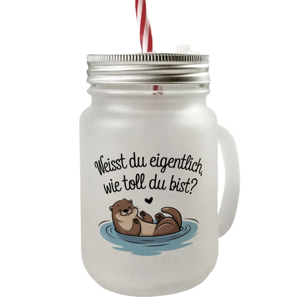 Weisst du eigentlich, wie toll du bist? Trinkglas mit Bambusdeckel mit Otter