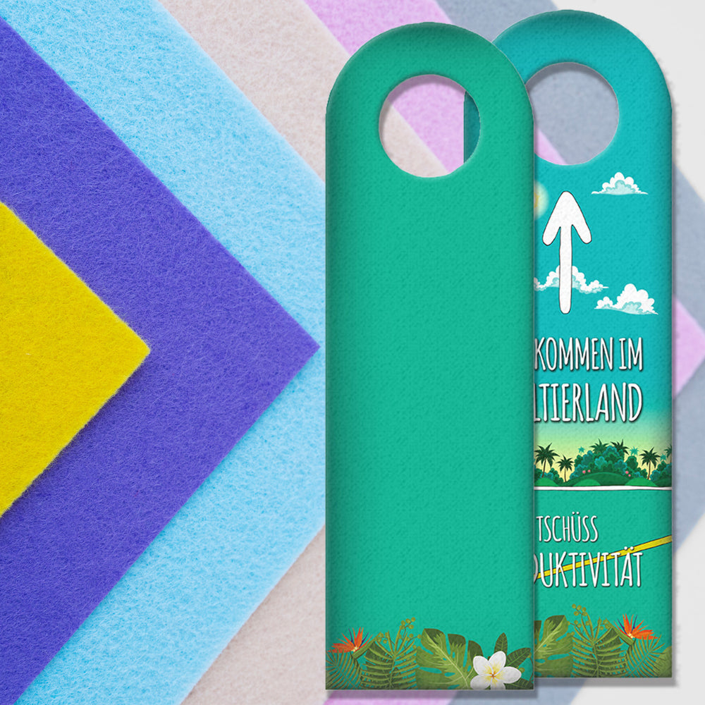 - Einzeln erhältlich oder als 3er- und 10er-Sparset. Aus hochwertigem Filz mit praktischem Loch für die Türklinke. Mit Sorgfalt in Handarbeit hergestellt in unserer Türhänger-Manufaktur in Deutschland.