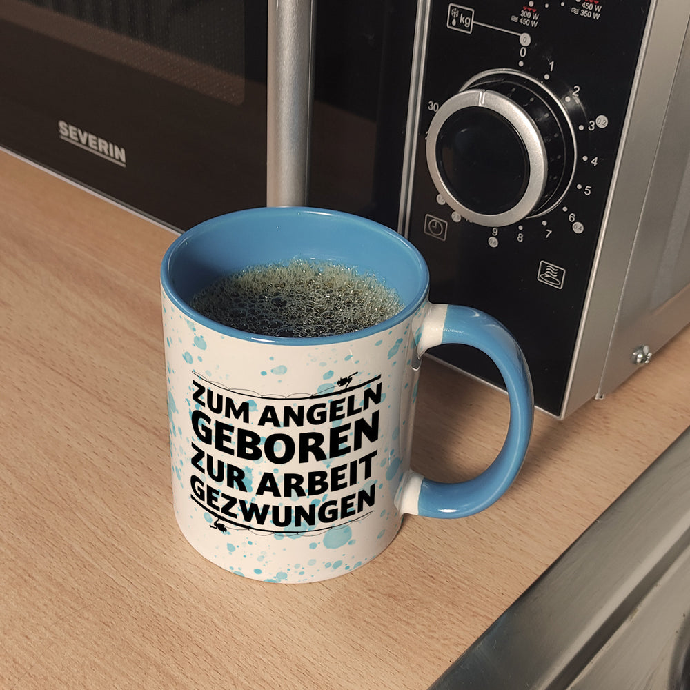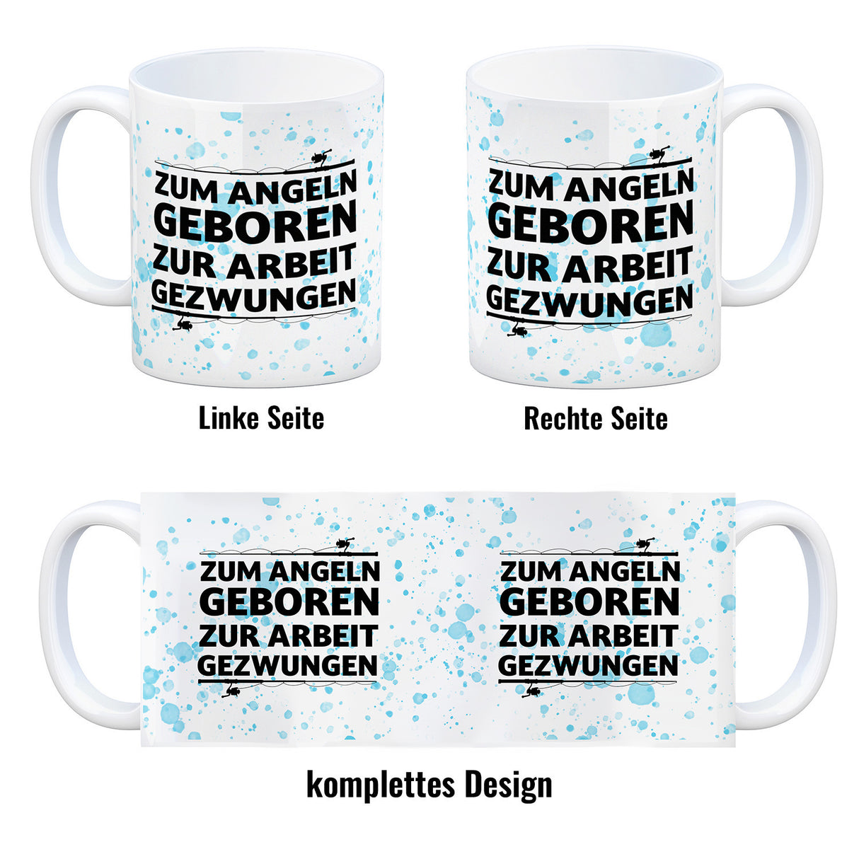 • 1x Zum Angeln geboren zur Arbeit gezwungen Kaffeebecher für Angler in der gewählten Ausführung