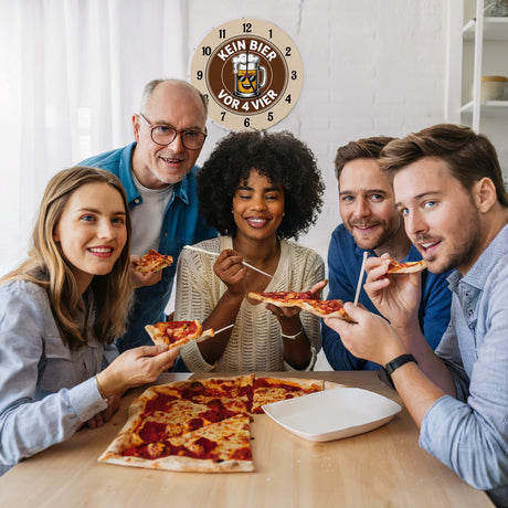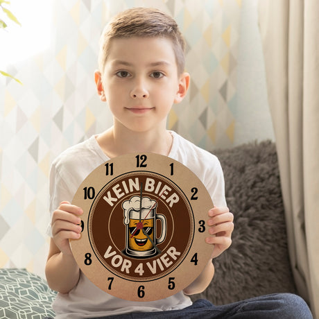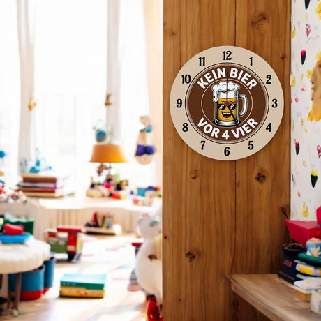 Bierglas Cartoon - Kein Bier vor vier Spruch Wanduhr