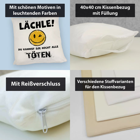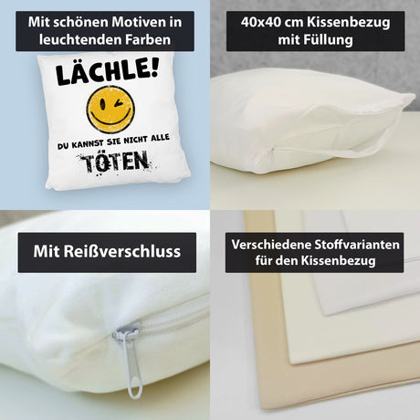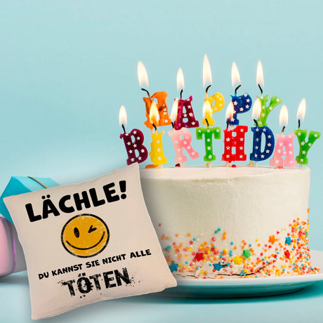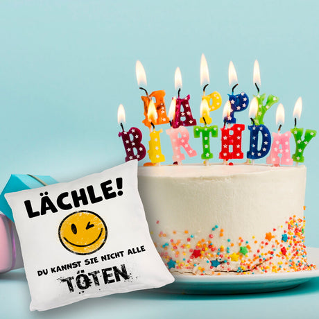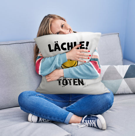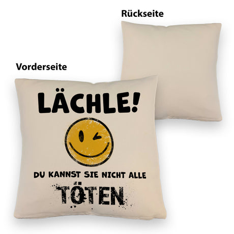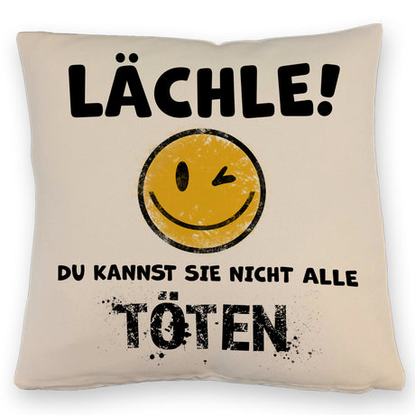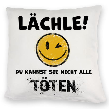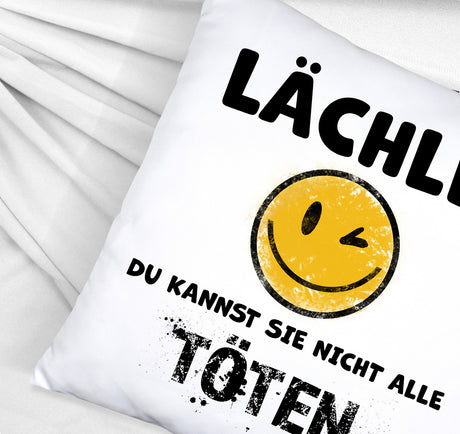 Ab €12,95Grundpreis /Nicht verfügbarAuf LagerEmoticon Kissen mit Spruch - Lächle du kannst sie nicht alle töten