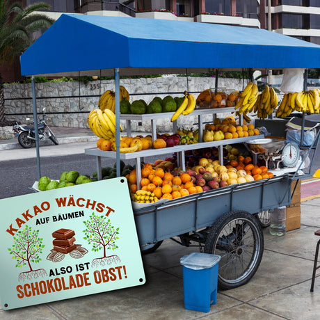 Ab €12,95Grundpreis /Nicht verfügbarAuf LagerKakao Metallschild in 15x20 cm mit Spruch Schokolade ist Obst