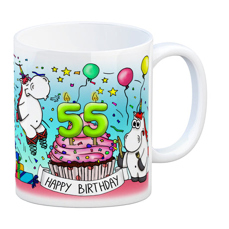 Honeycorns Tasse zum 55. Geburtstag mit Muffin und Einhorn Party