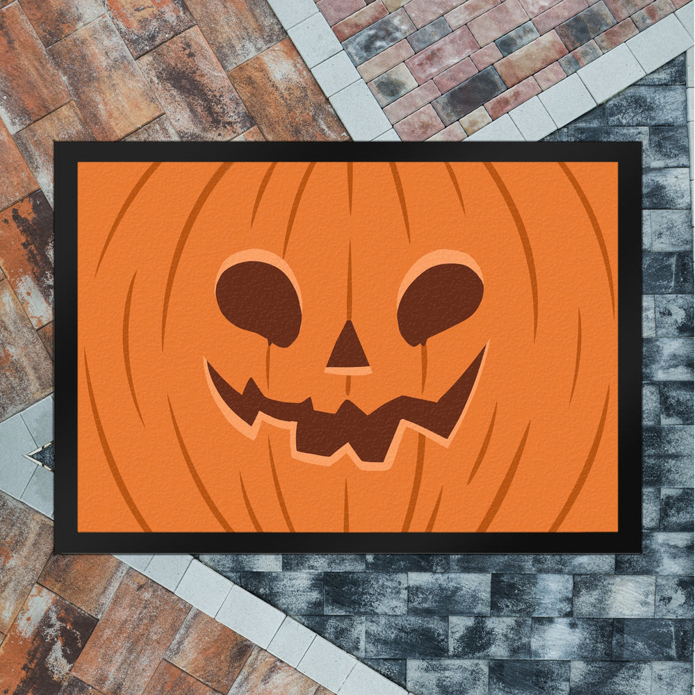 Fußmatte mit gruseligem Kürbiskopf Design für Halloween und die Herbstzeit