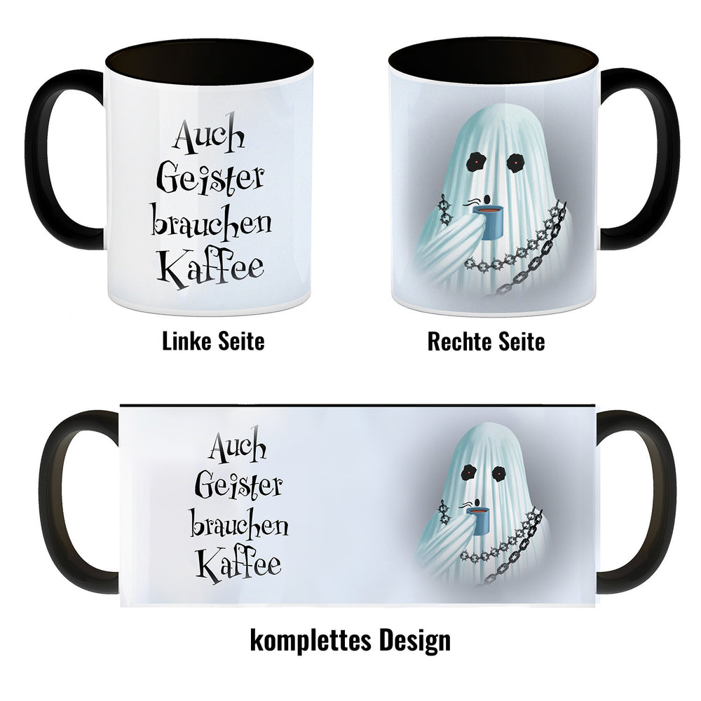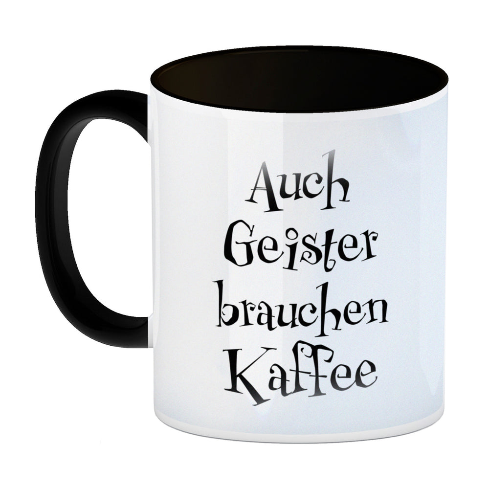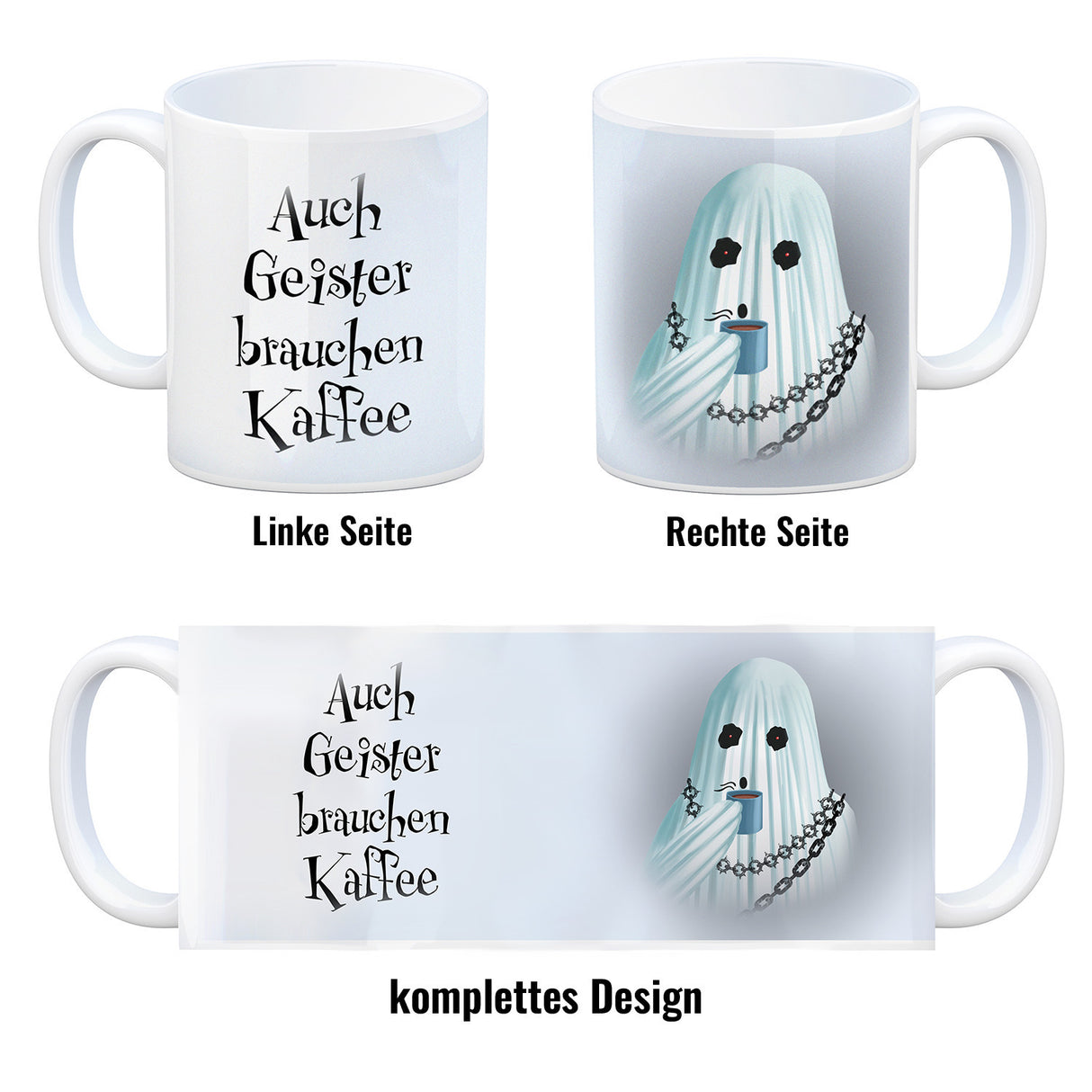 - 1x Kaffeebecher mit lustigem Motiv und Spruch - Auch Geister brauchen Kaffee - in der gewählten Ausführung