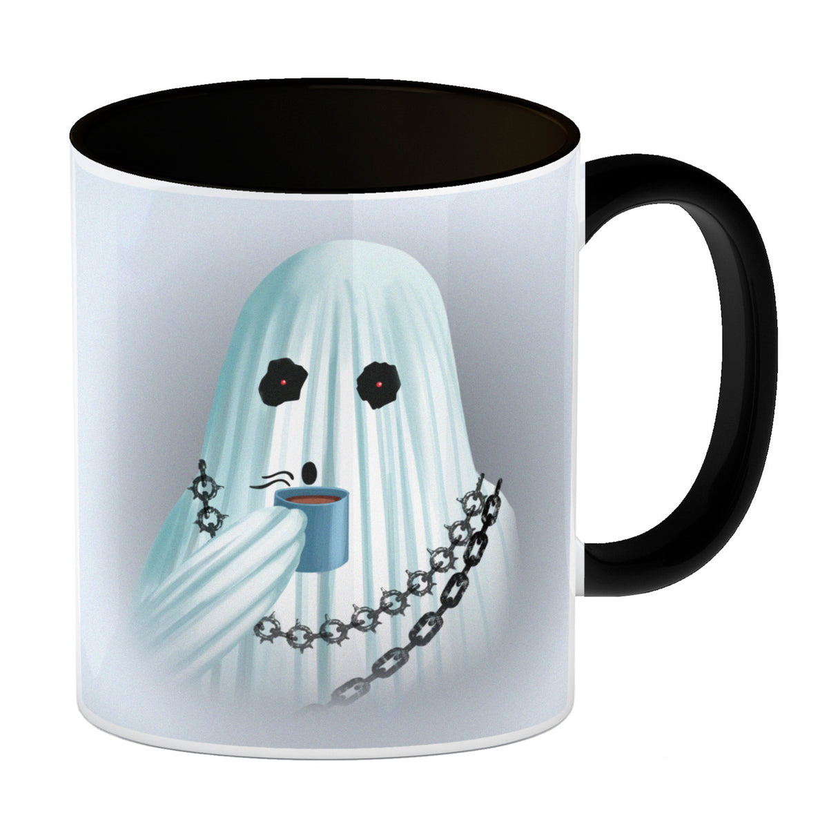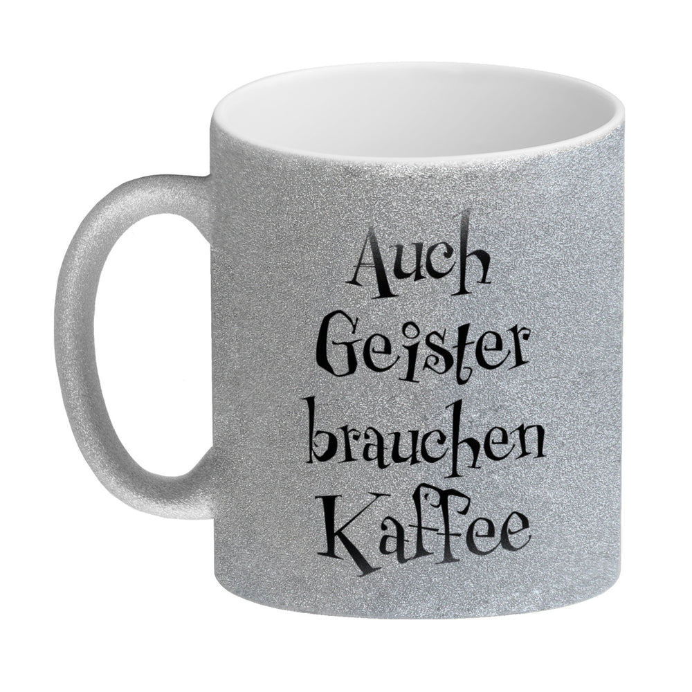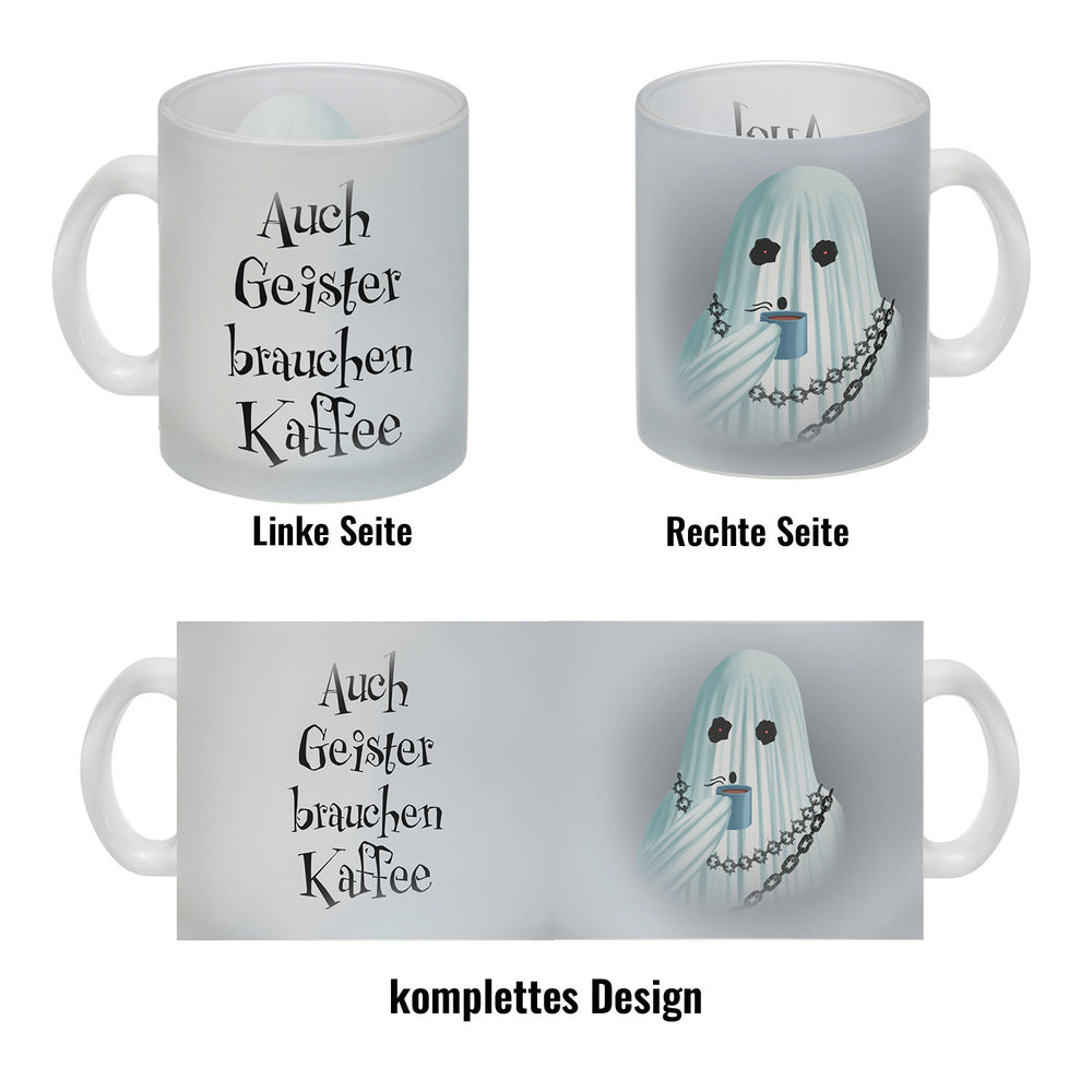 - 1x Kaffeebecher mit lustigem Motiv und Spruch - Auch Geister brauchen Kaffee - in der gewählten Ausführung