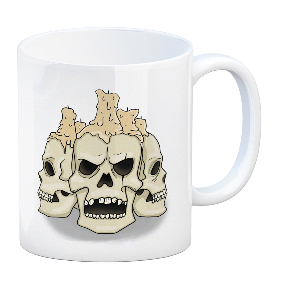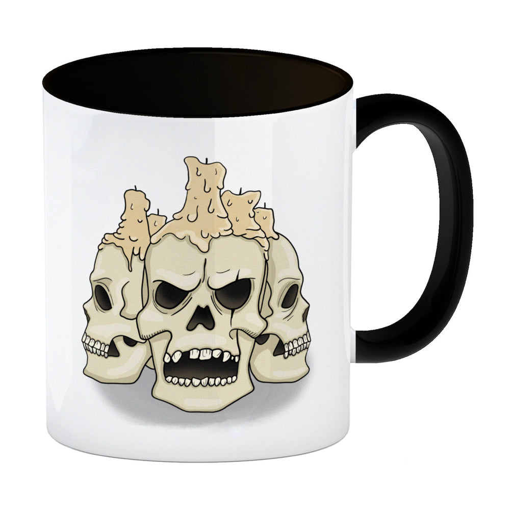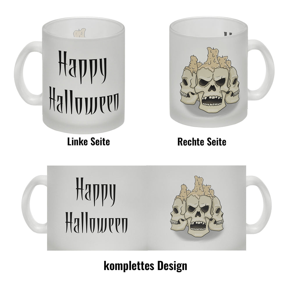 - 1x Kaffeetasse mit Totenköpfen und Kerzen - Happy Halloween in der gewählten Ausführung