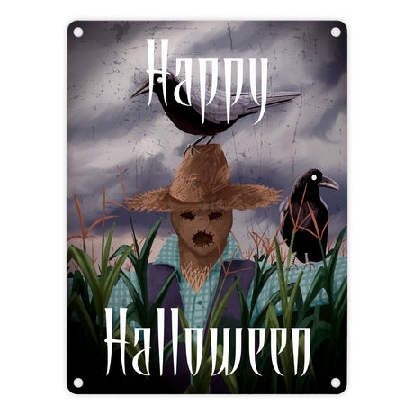 Metallschild mit gruseliger Vogelscheuche und Schriftzug - Happy Halloween