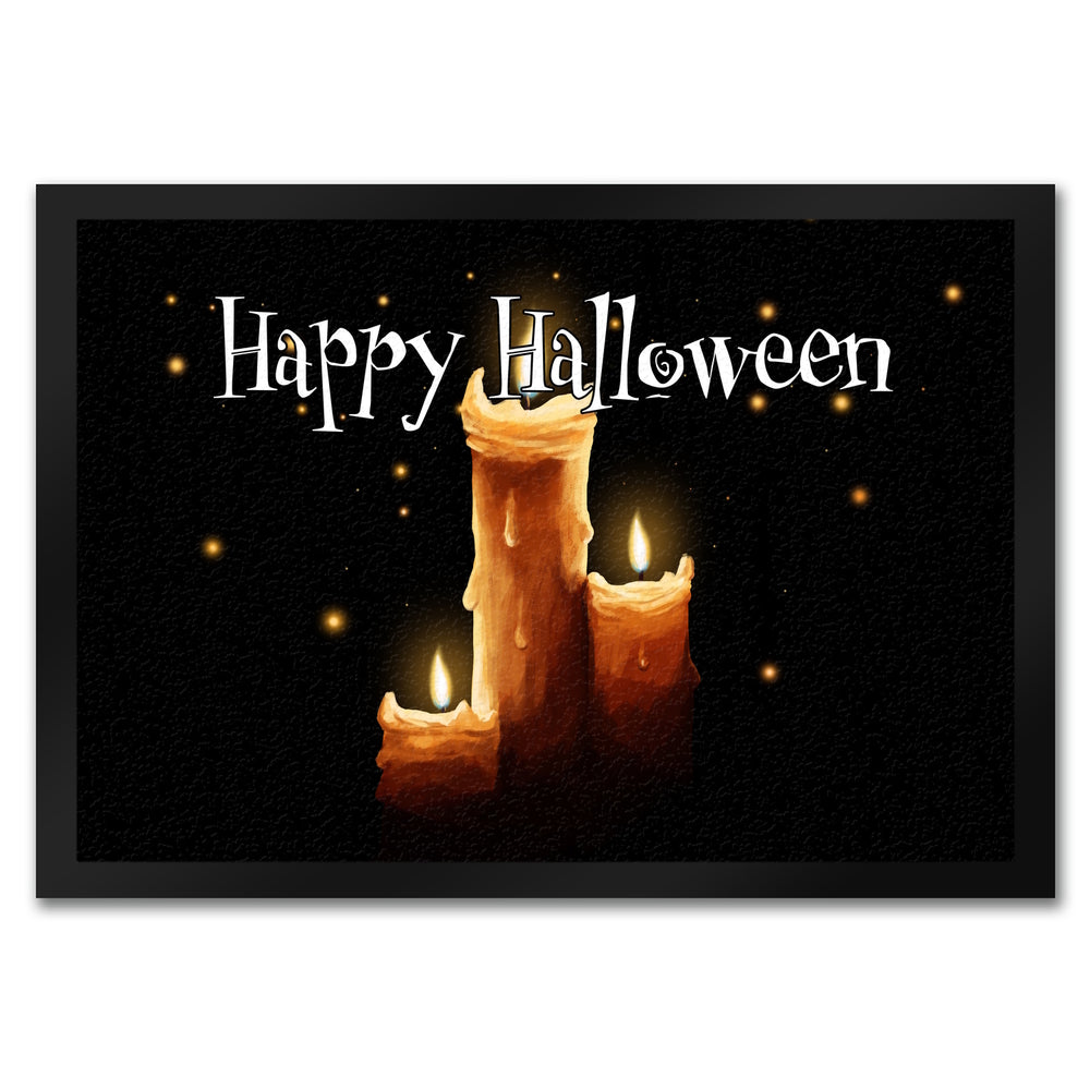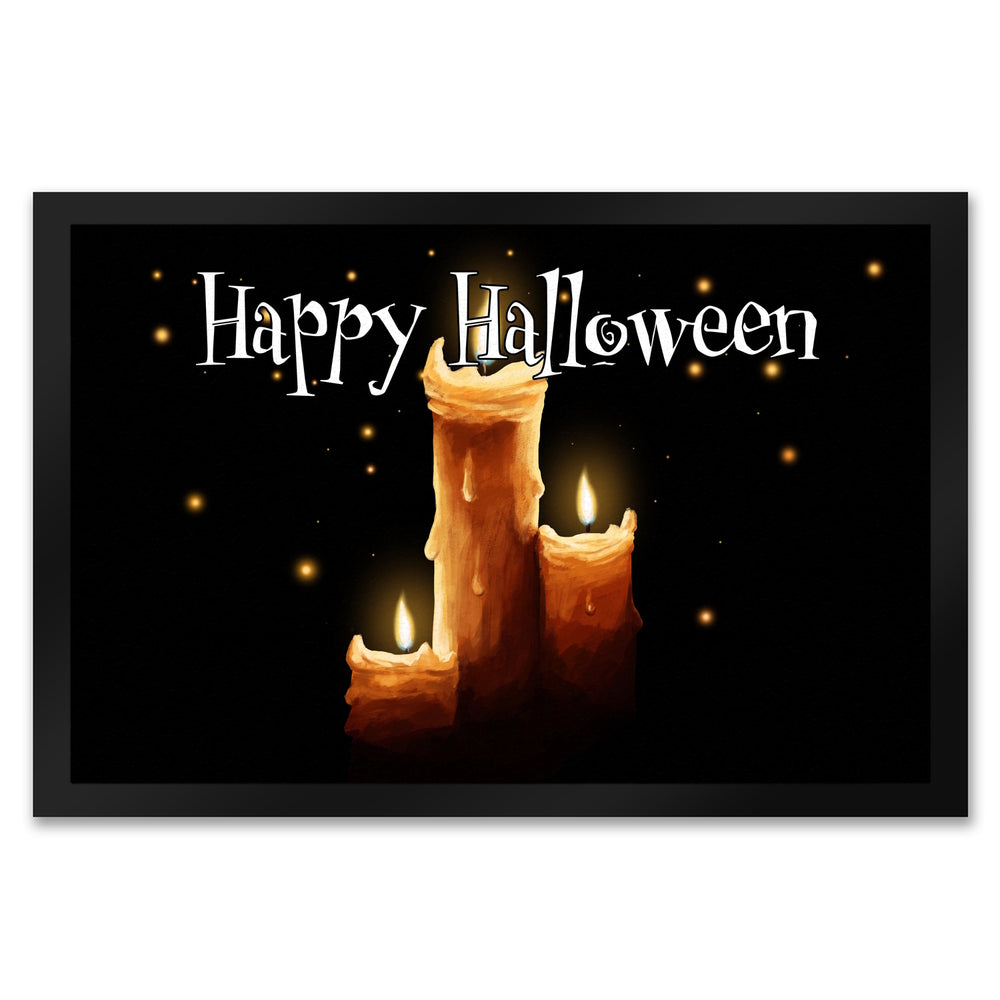 Fußmatte in 35x50 cm mit Kerze Motiv und Happy Halloween Schriftzug