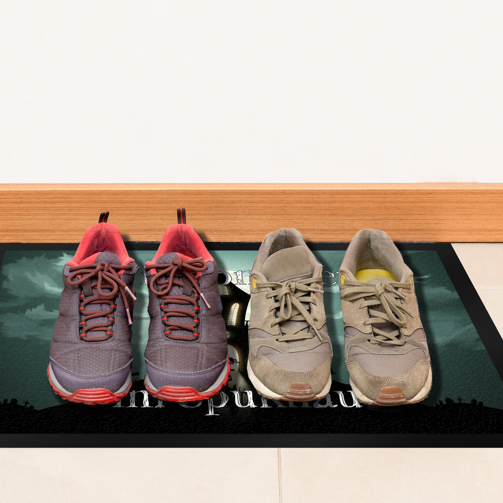 Dekorieren Sie Ihr Haus oder Ihre Wohnung mit unserer einzigartigen, schaurig schönen Fußmatte. Mit dem gruseligen Halloween Motiv und Spruch - Willkommen im Spukhaus - ist sie der perfekte Einstieg in die Oktoberzeit! Erhältlich in den Größen 35x50cm, 60x40cm und 75x50cm aus pflegeleichter Kunstfaser. Perfekt für alle Halloweenbegeisterten oder als Geschenkidee. Dank der rutschfesten Gummiunterseite und dem niedrigem Gummirand liegt die Matte sicher am Boden. Jede Matte wird mit Sorgfalt in Handarbeit in unserer Fußmatten-Manufaktur in Deutschland hergestellt. Schenken Sie sich selbst oder anderen eine schaurige Freude und bestellen Sie noch heute unsere einzigartige Fußmatte mit dem gruseligen Halloween Motiv und Spruch!