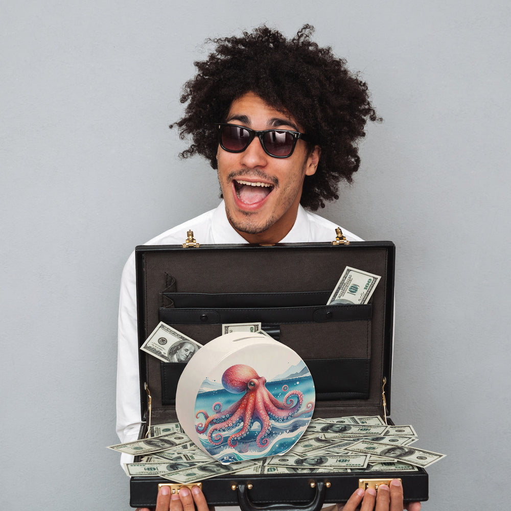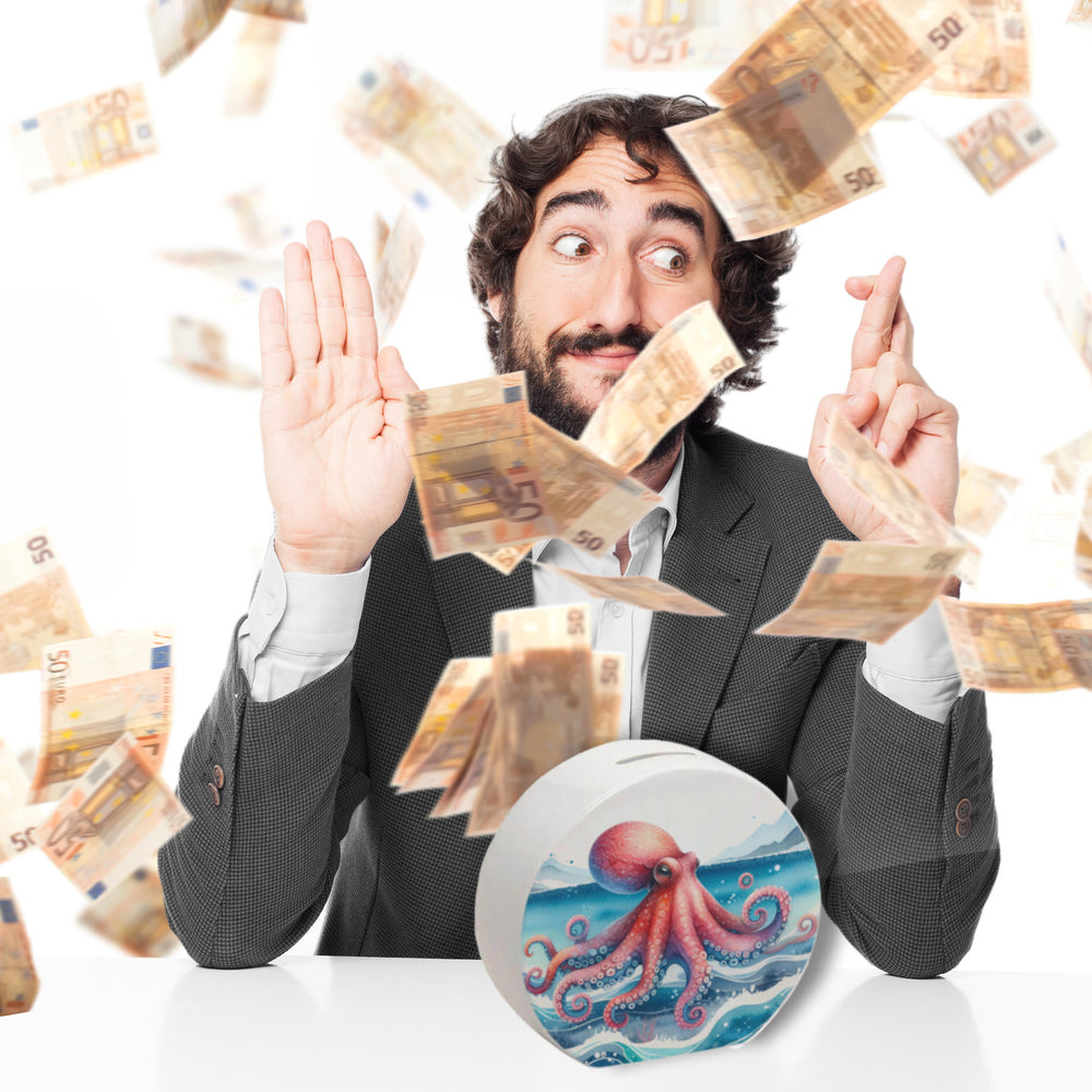 • Entdecke die verspielte Seite des Sparens mit unserer Kraken Aquarell Spardose! Mit Tentakeln, die in einem azurblauen Ozean zu tanzen scheinen, wird jeder Cent zum Unterwasserabenteuer. Ein Tintenfisch so charmant, er könnte dein Herz (und dein Kleingeld) stehlen!