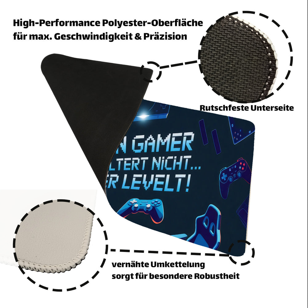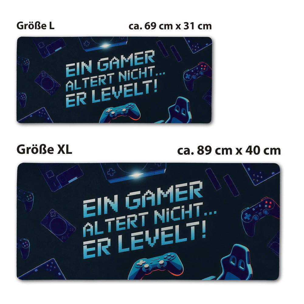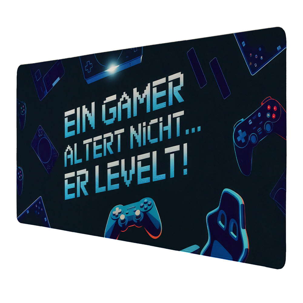 - 1x Ein Gamer altert nicht - Er levelt Schreibtischunterlage 69x31cm XXL Mauspad in der gewählten Größe