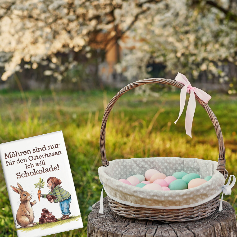 Ich will Schokolade statt Möhren Metallschild in 15x20 cm mit Osterhasen
