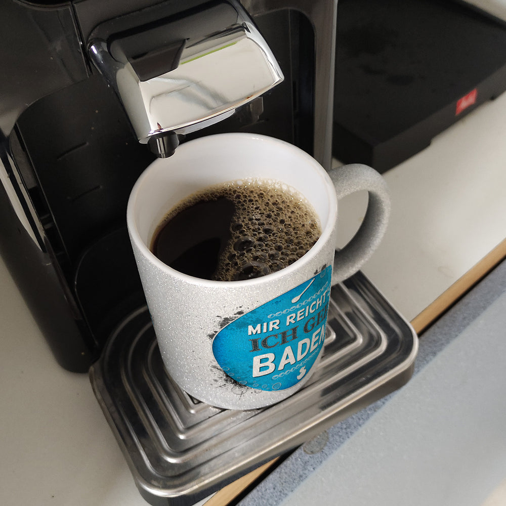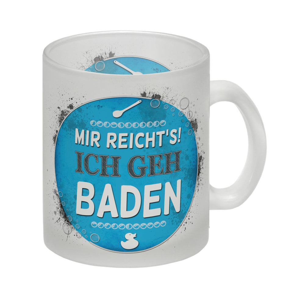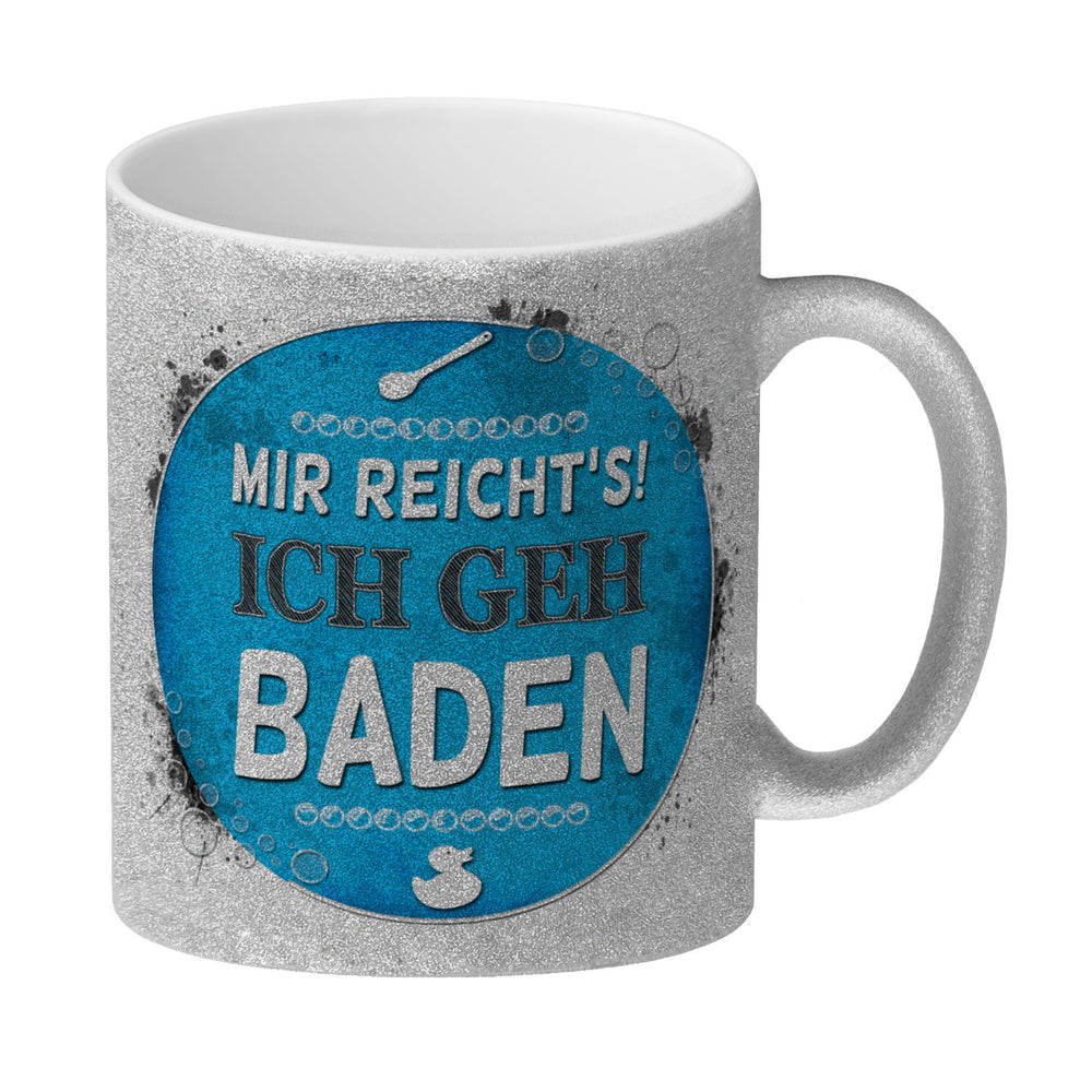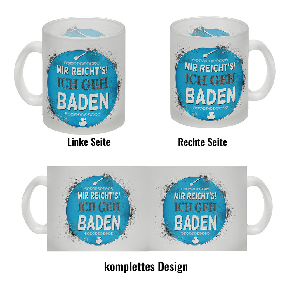 - 1x Kaffeebecher mit Spruch: Mir reicht's! Ich geh baden in der gewählten Ausführung