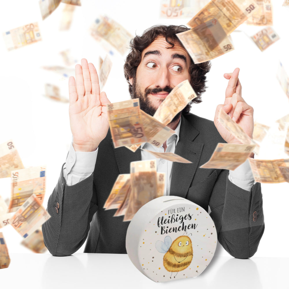 - 1x Pummel Biene Spardose mit Spruch Für ein fleißiges Bienchen in der gewählten Ausführung