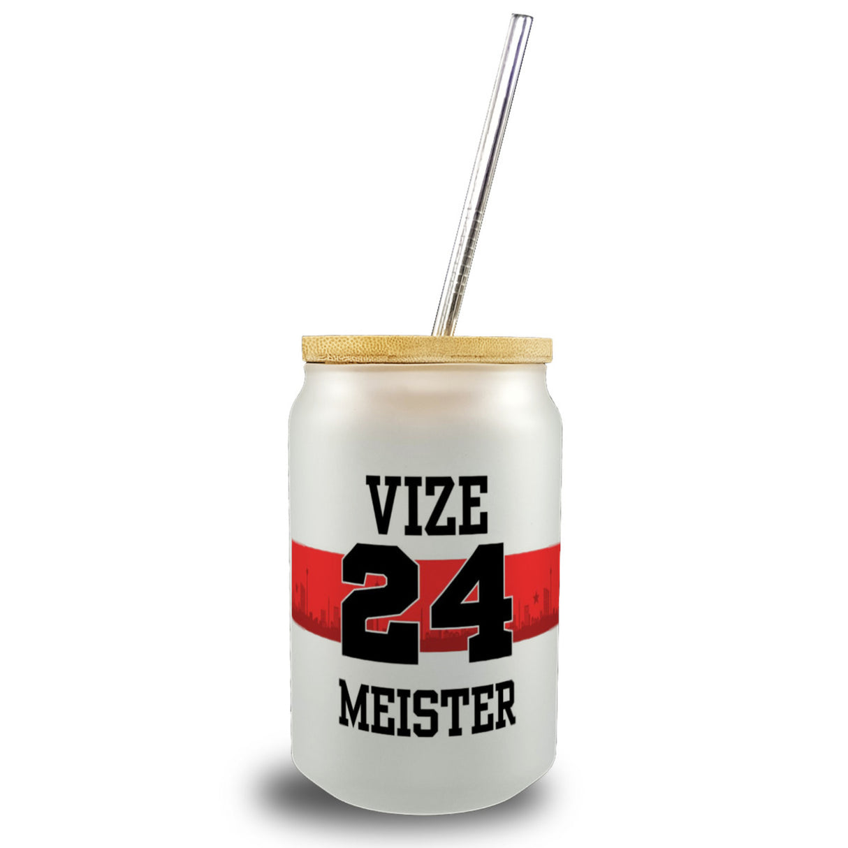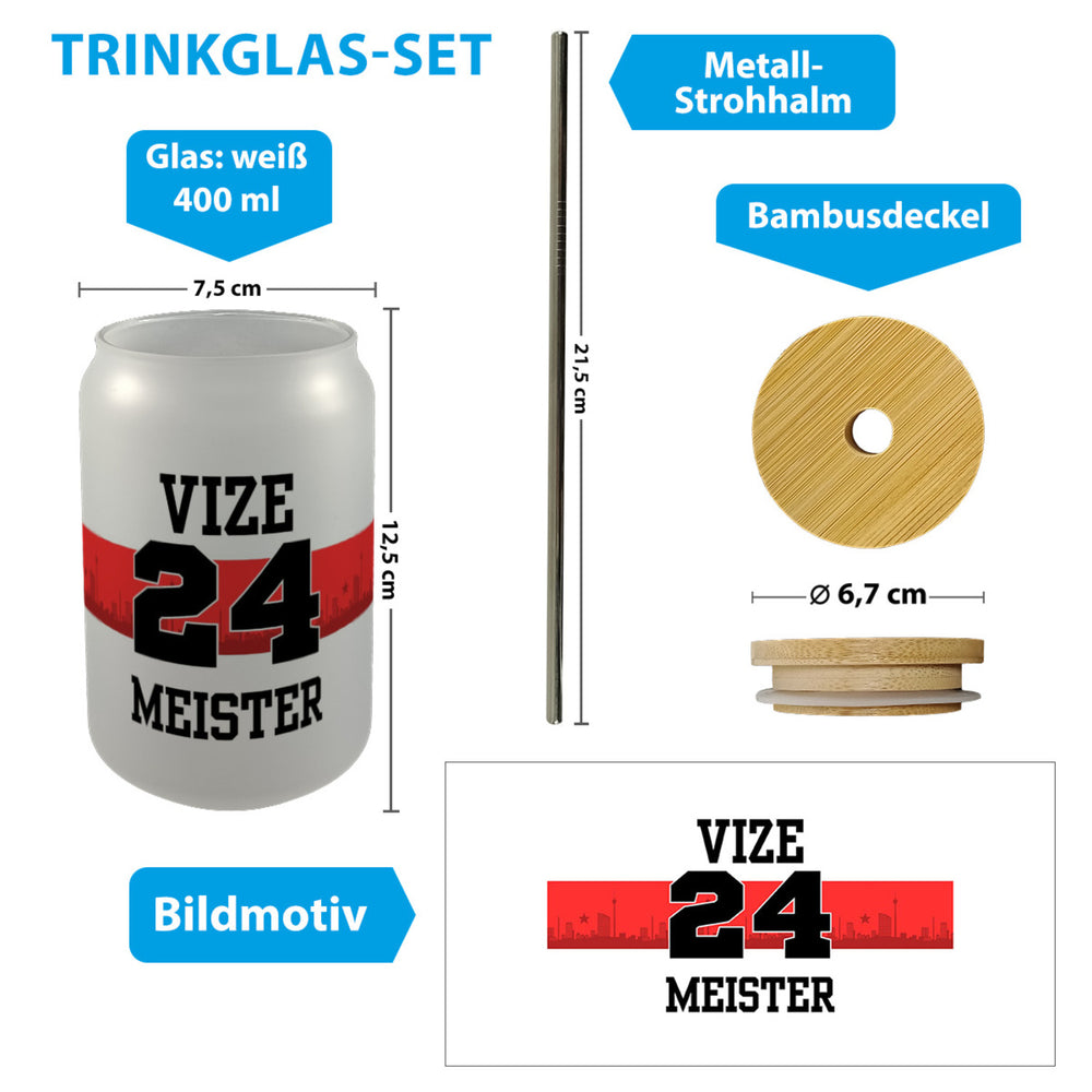 • 1x Stuttgart Brustring Trinkglas mit Bambusdeckel mit Spruch Vizemeister 2024 mit Bambusdeckel oder Henkel