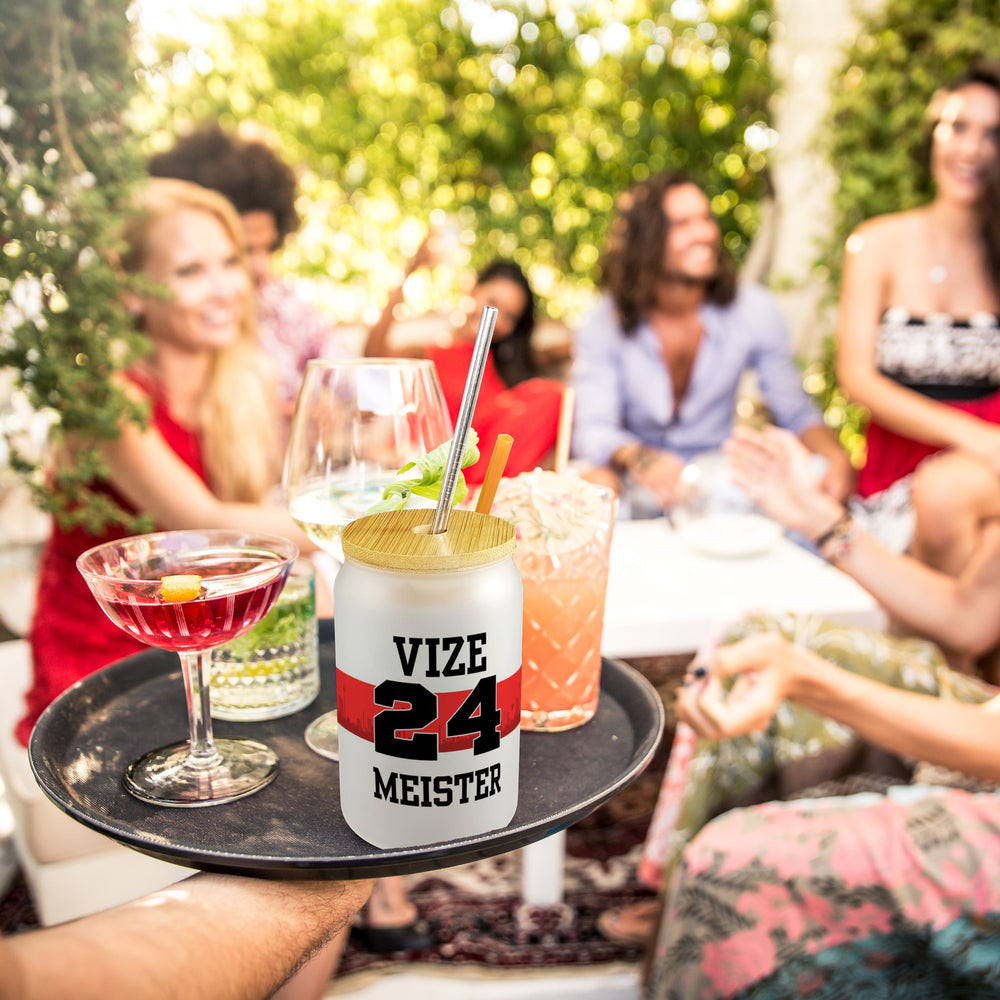 Stuttgart Brustring Trinkglas mit Bambusdeckel mit Spruch Vizemeister 2024