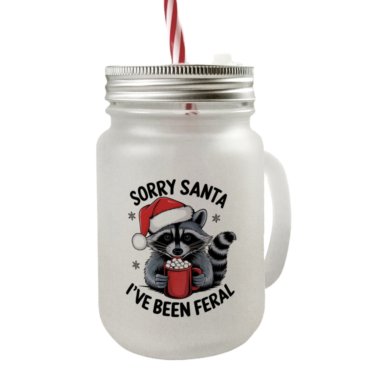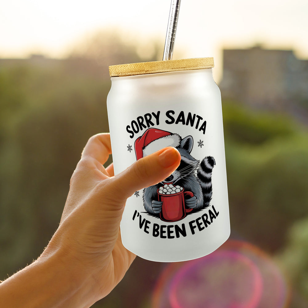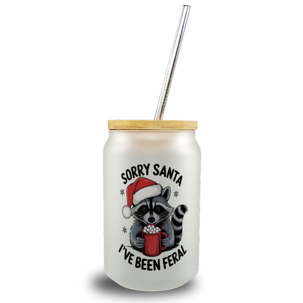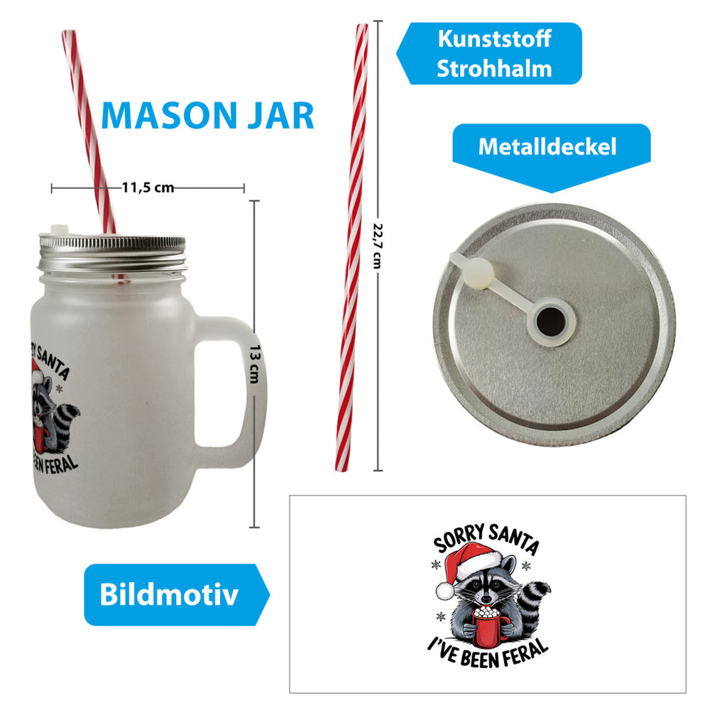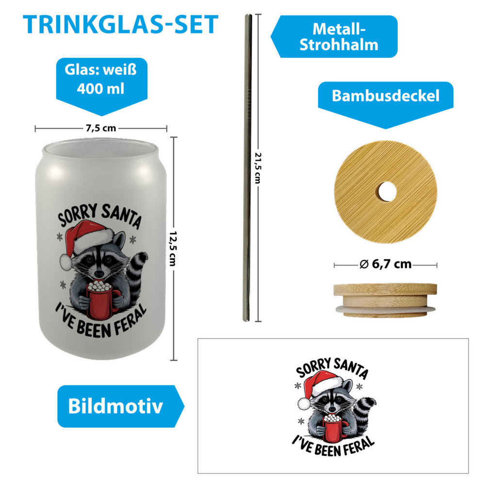 - 1x Waschbär mit Weihnachtsmütze Trinkglas mit Bambusdeckel - Sorry Santa mit Bambusdeckel oder Henkel