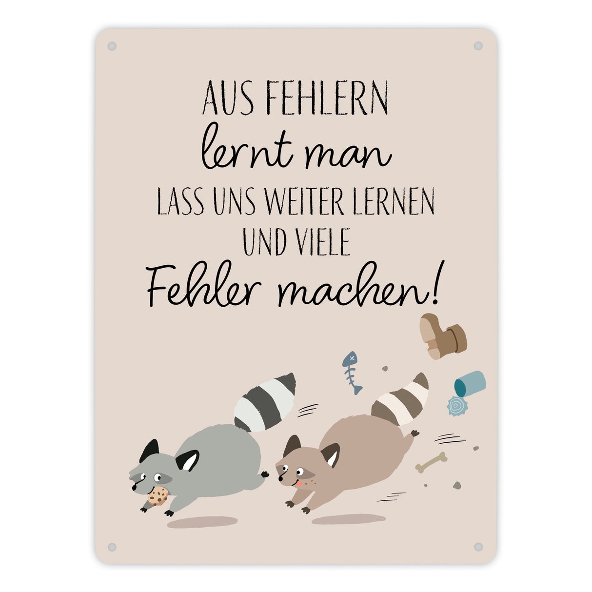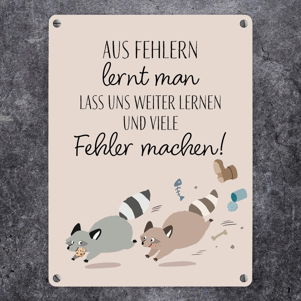 Waschbären Metallschild in 15x20 cm mit Spruch Fehler machen weiter lernen
