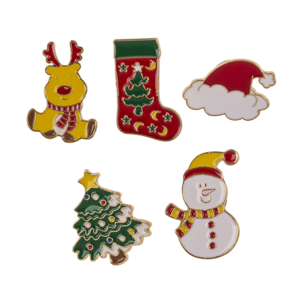 Weihnachts-Ansteckbutton - niedliche X-Mas Anstecker aus Metall im 5er Set ist auf Lager und wird versandt, sobald es wieder verfügbar ist