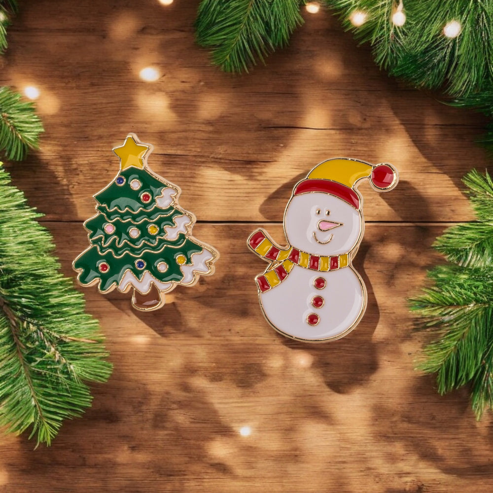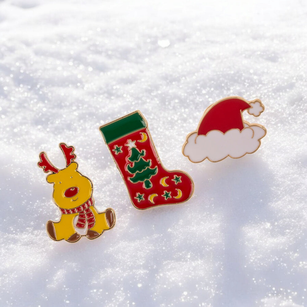 Weihnachts-Ansteckbutton - niedliche X-Mas Anstecker aus Metall im 5er Set