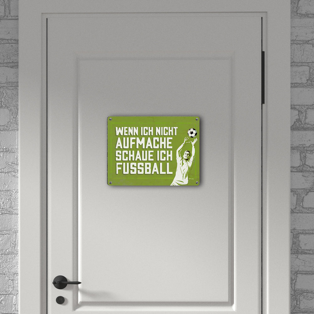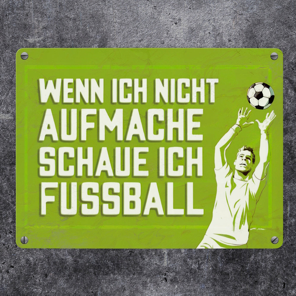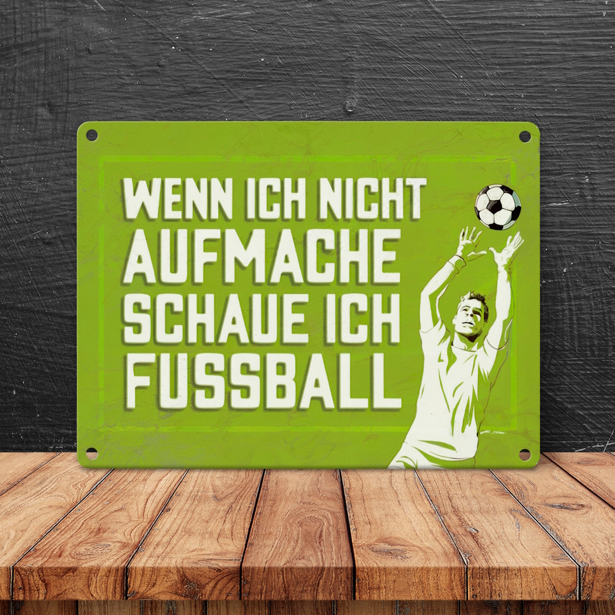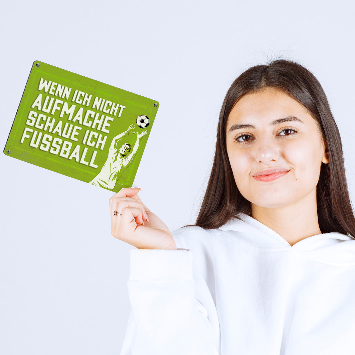 - 1x WENN ICH NICHT AUFMACHE SCHAUE ICH FUSSBALL Metallschild in 15x20 cm in der gewählten Größe